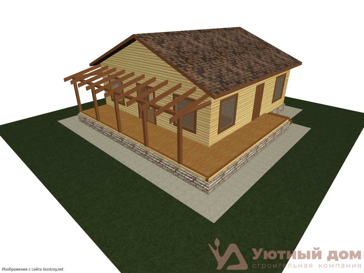 Уютный дом площадью 80 м² из профилированного бруса с двумя спальнями отличается практичностью. Один этаж обеспечивает удобство и компактность. Натуральные материалы создают здоровый микроклимат. Проект подойдет для дачного или временного проживания.Характеристики