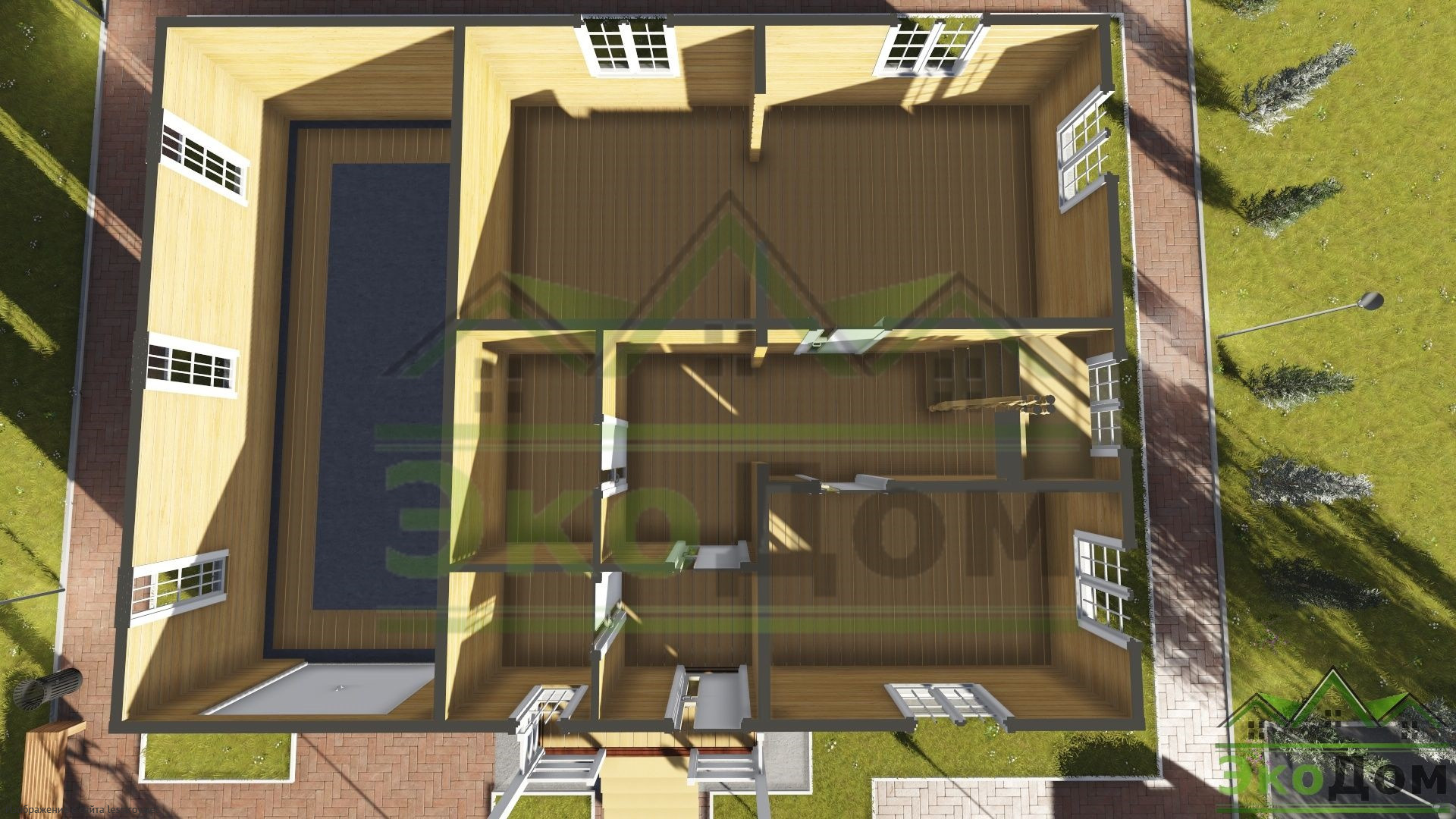- Форма: Прямоугольные дома