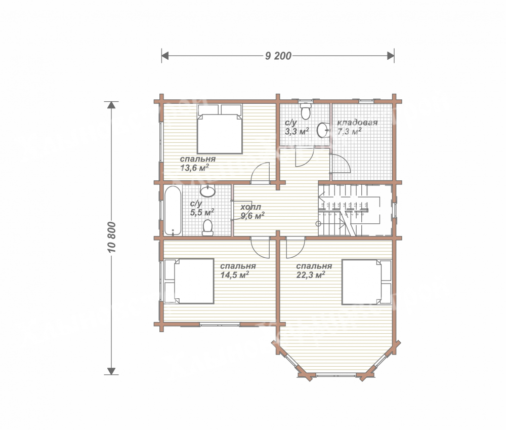 Проект двухэтажного дома Дом из профилированного бруса ХСМ-98