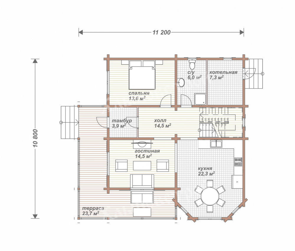 - Тип кровли: Дома с четырехскатной крышей (вальмовой)