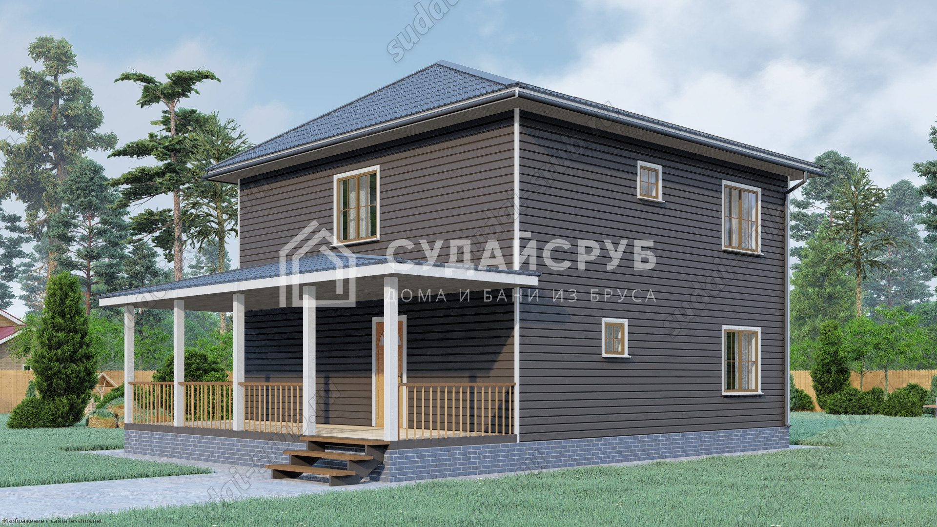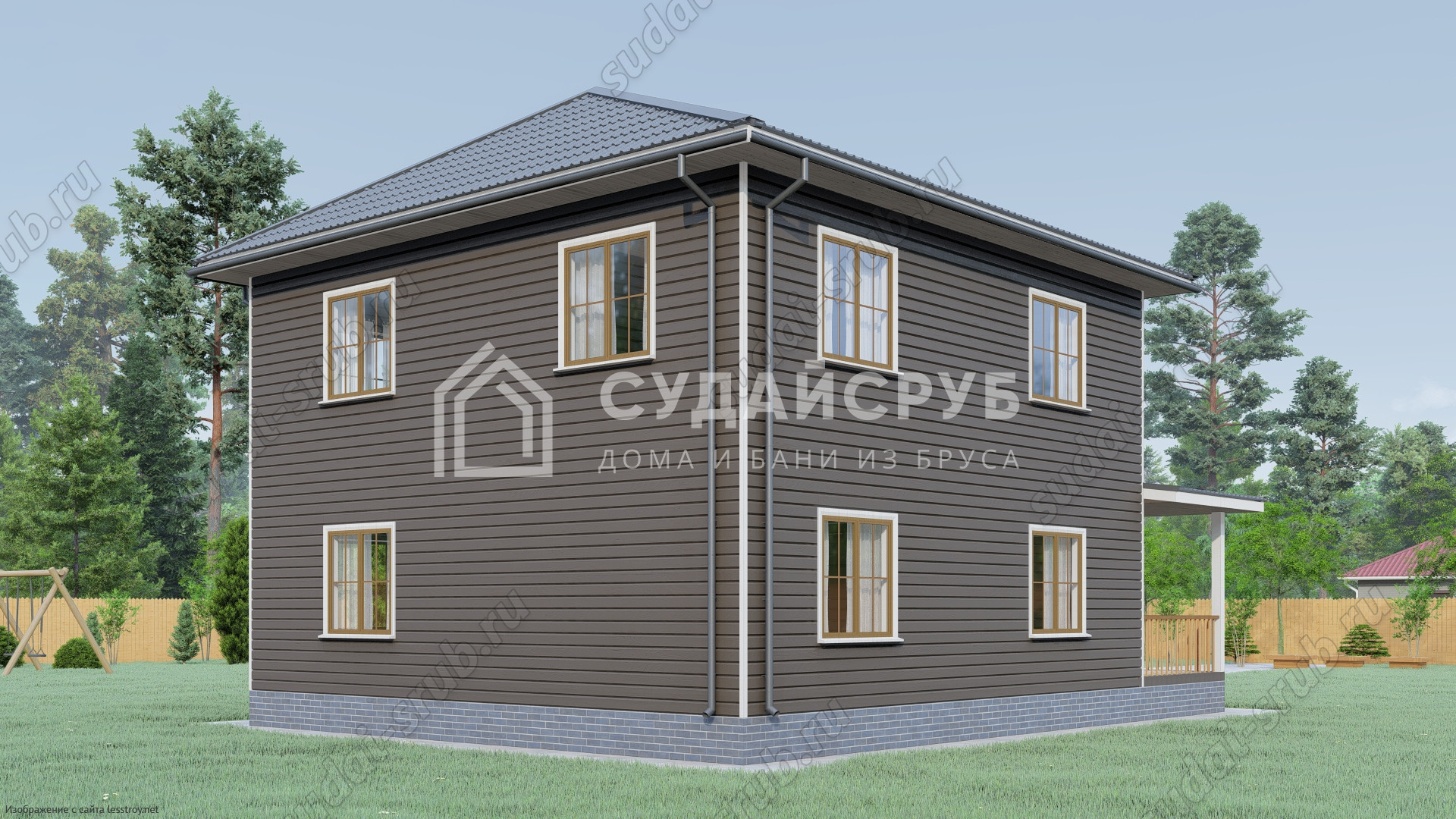 - Тип кровли: Дома с четырехскатной крышей (вальмовой)