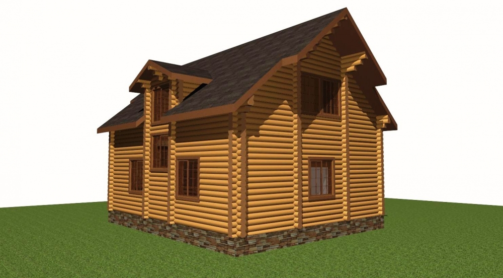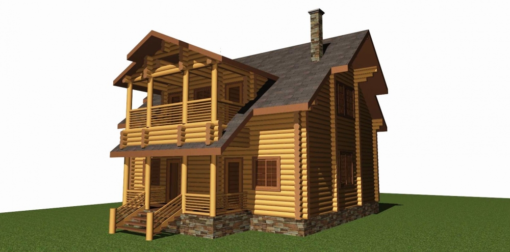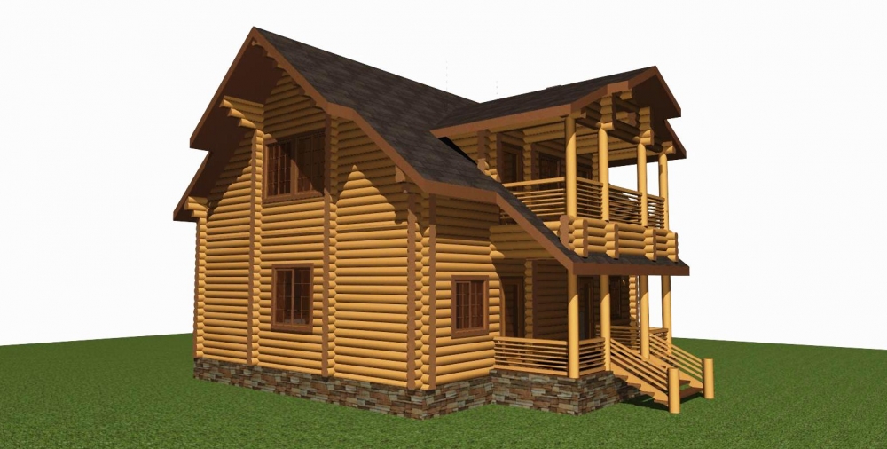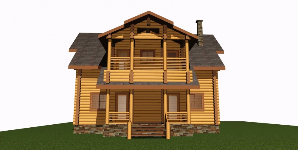 Проект двухэтажного дома Коттедж из оцилиндрованного бревна. Проект Ветрово.