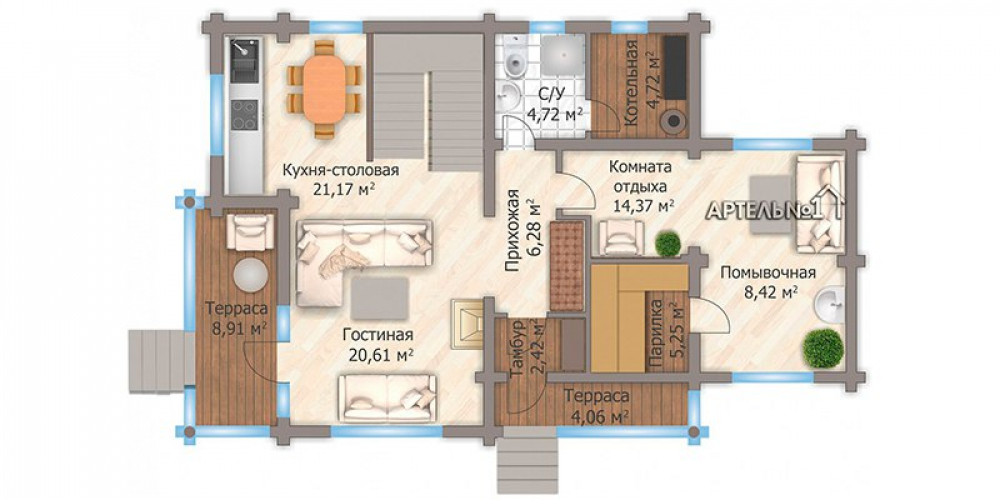 - Тип кровли: Дома с четырехскатной крышей (вальмовой)