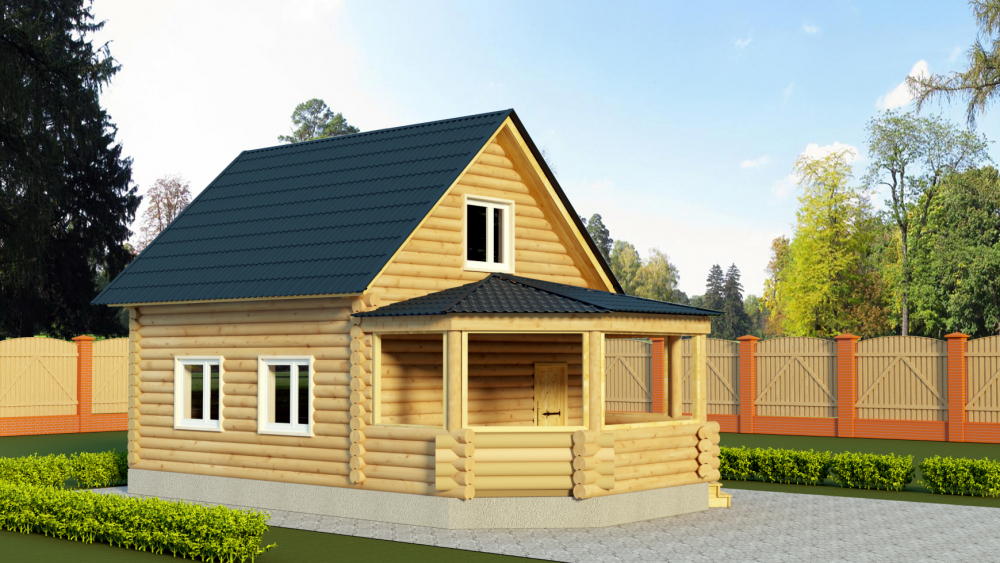 Его архитектура выразительна, но не в ущерб комфорту. Дом предлагает 60 м² рационально организованного интерьера. Двухэтажная рациональная планировка разделяет приватные и общественные зоны. Конструкция из бревна обеспечивает прочность и долговечность. Материал кровли — рубероид, что добавляет зданию индивидуальность.Характеристики