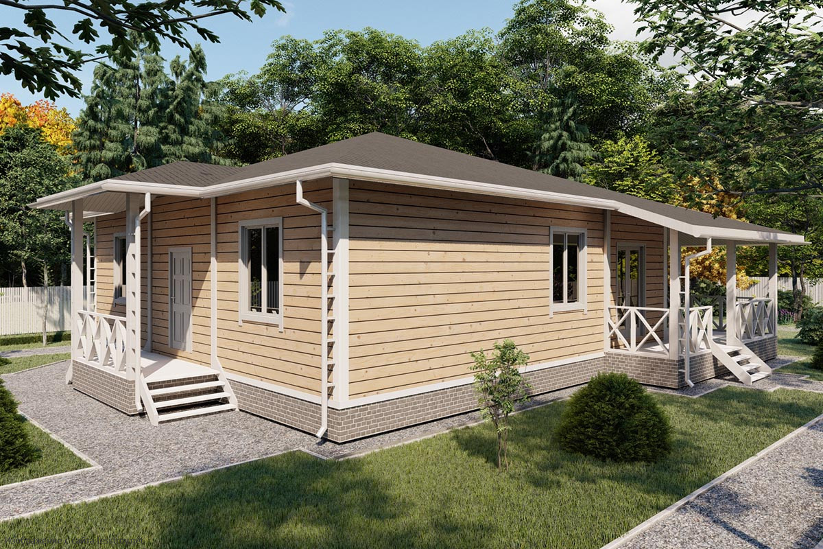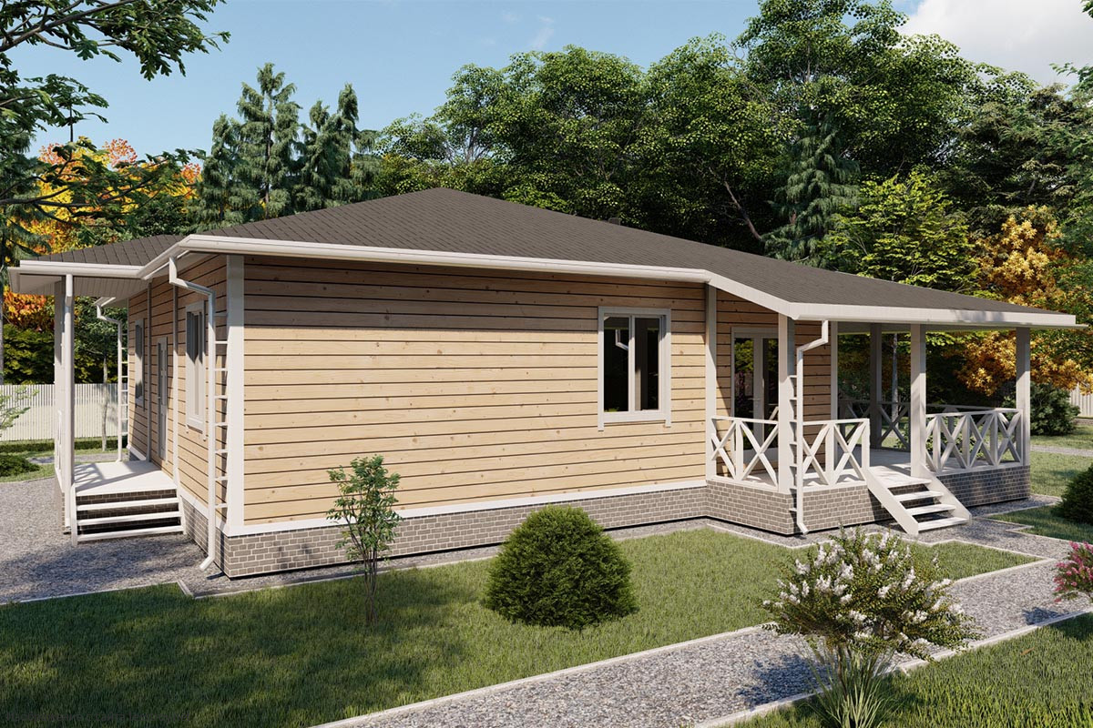 Уютный одноэтажный дом из SIP-панелей площадью 126 м² с террасой и тремя спальнями создан для отдыха на природе. Просторная гостиная, переходящая в открытую площадку, стирает границы между интерьером и природой.Характеристики