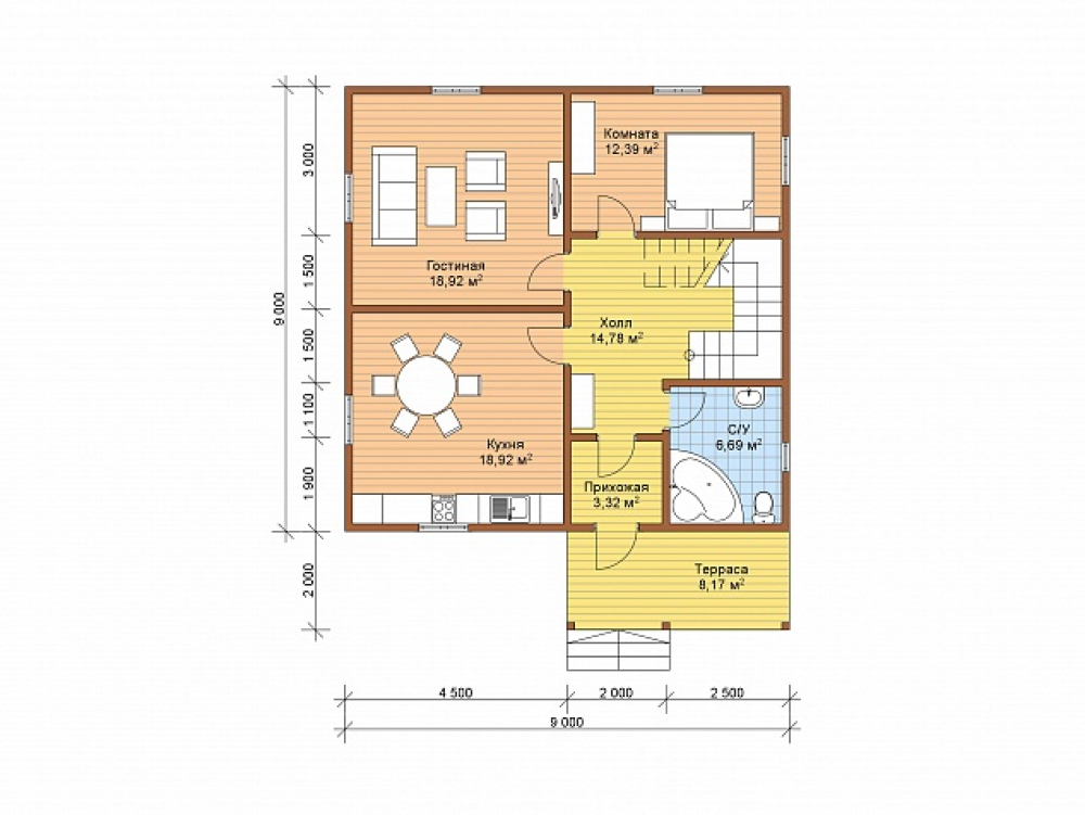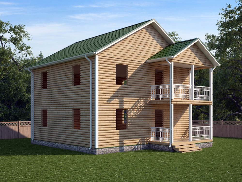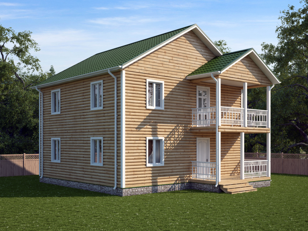 Проект двухэтажного дома Двухэтажный дом из бруса 9х9 под усадку терраса+балкон