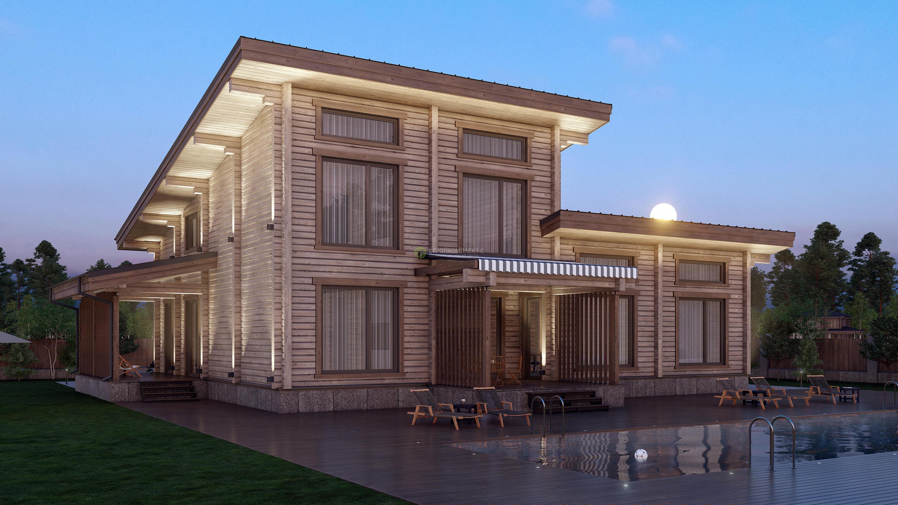 Брусовый дом площадью 303 м² — это просторное и надежное жилье для большой семьи. Натуральные материалы и качественная отделка подчеркивают экологичность проекта. Большие окна наполняют интерьер светом и открывают вид на природу. Проект идеально подходит для тех, кто ценит комфорт и традиционный стиль.Характеристики