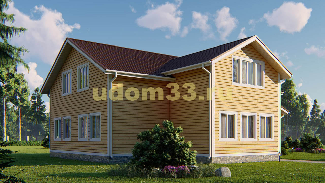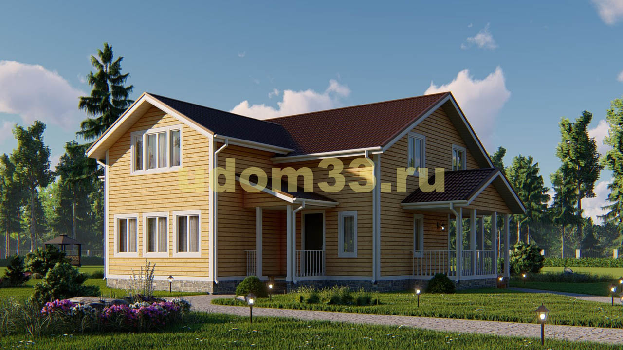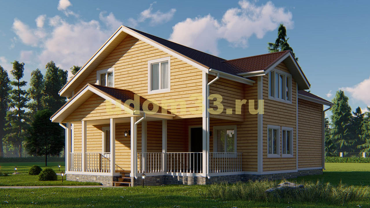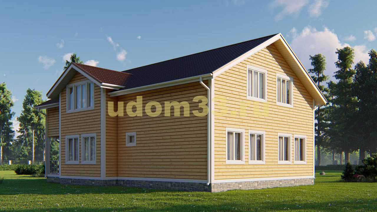 Проект двухэтажного дома Двухэтажный каркасный дом площадью 315 кв.м. Проект ДК-102 «Шатура»