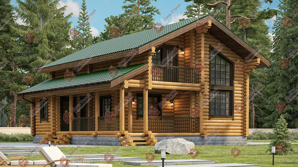 Проект двухэтажного дома Коттедж из оцилиндрованного бревна. Проект Ветрово.