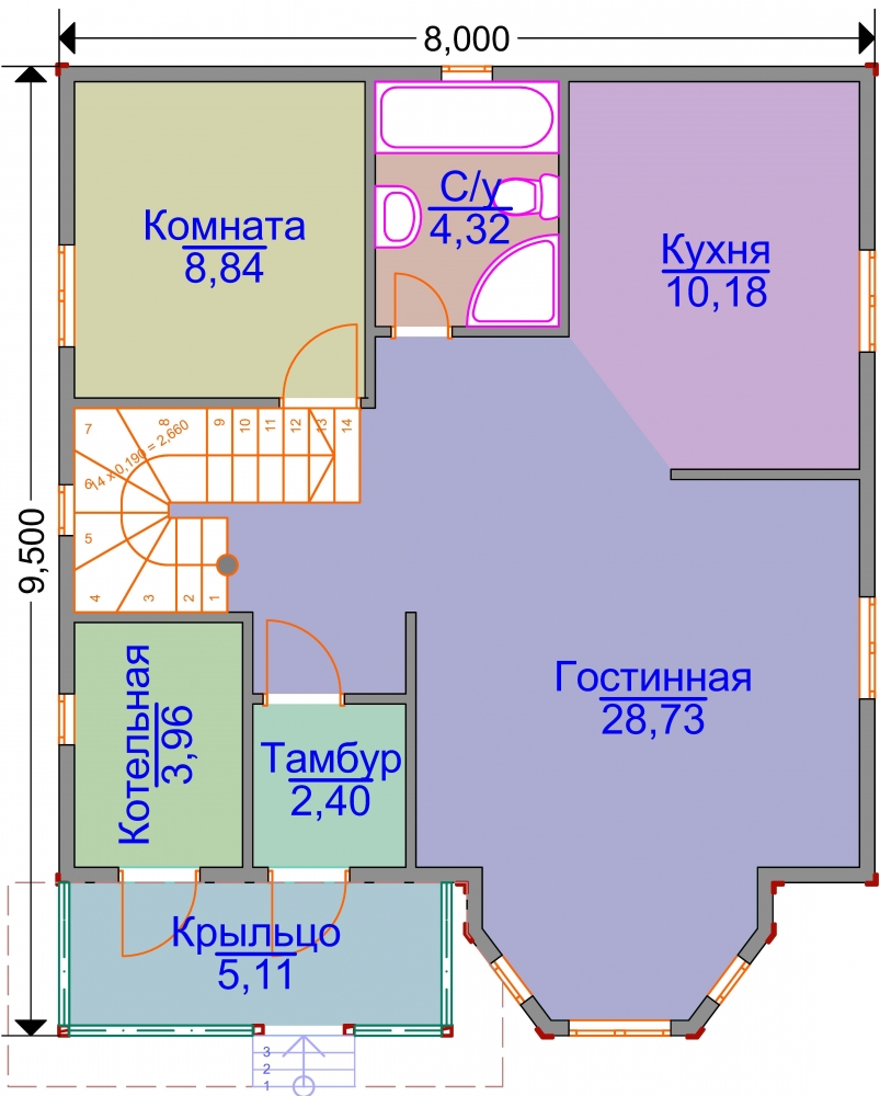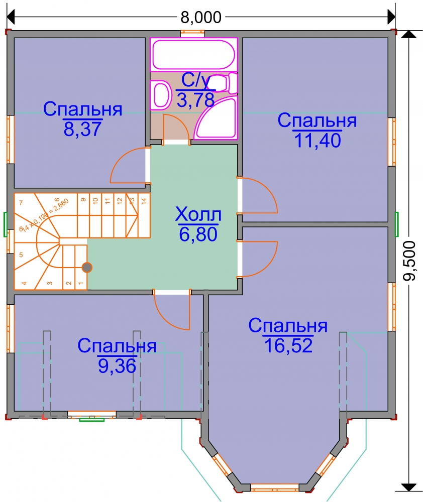 Проект двухэтажного дома ЭН-01 8х9,5