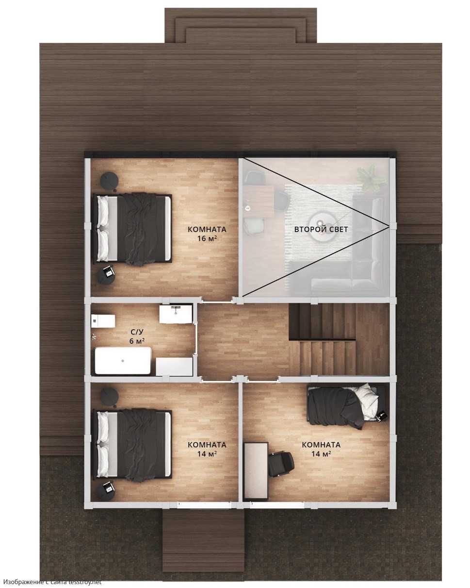 Дом, где хочется обнимать подушки и целовать обои. Дом даёт 115 м² для отдыха, творчества и общения. Двухэтажная рациональная планировка создаёт идеальные условия для жизни всей семьи. Стены из Брус хорошо держат тепло и защищают от шума. Проект включает 4 спальни — удобно для семьи.Характеристики