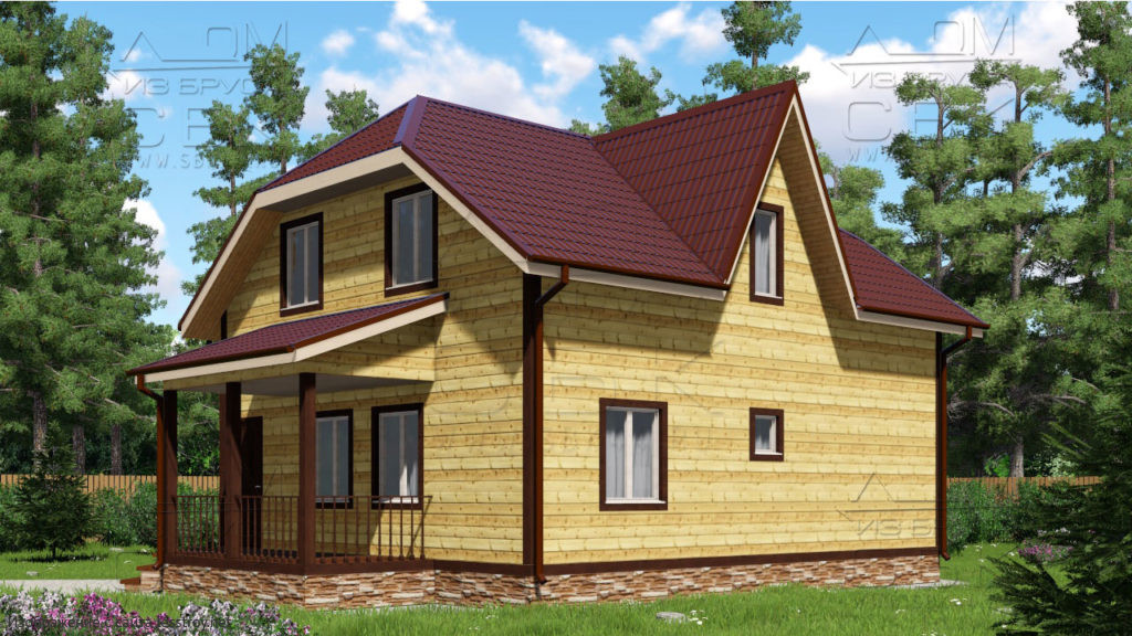 Проект двухэтажного дома Дом из клееного бруса с террасой и балконом. Проект Светово.