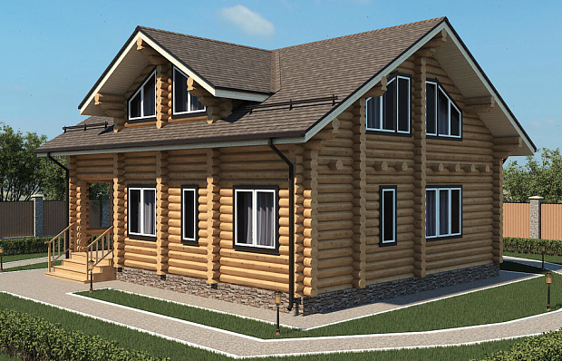 - Все фронтоны дома – из оцилиндрованного бревна (или бревна ручной рубки, если заказываете строительство из этого материала);