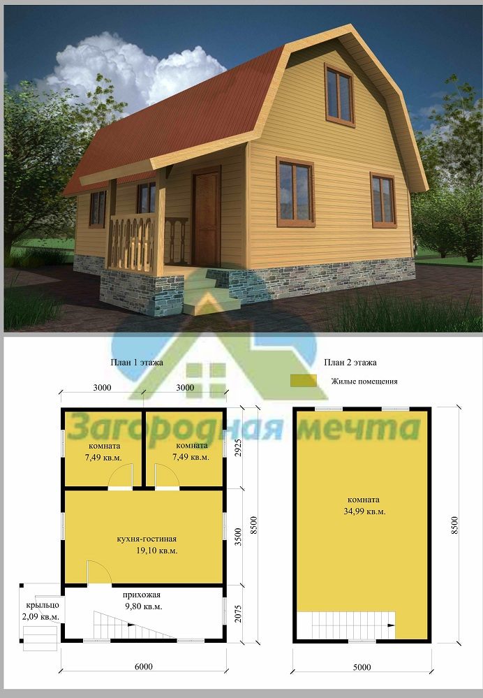 Проект одноэтажного дома Каркасно-щитовой дом 6х8,5 м..Проект 3К