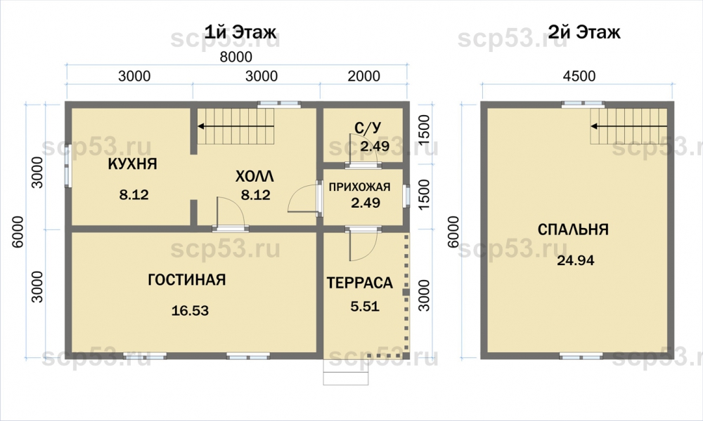 Проект одноэтажного дома Каркасный дом 6х8м КД-2