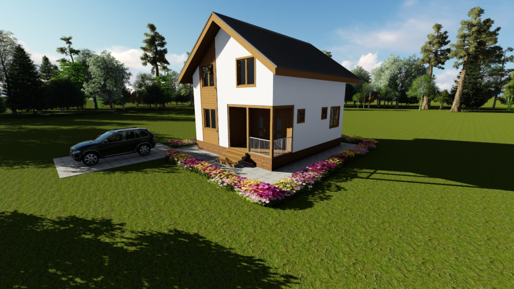 Проект двухэтажного дома Каркасный дом 8х8 с большой террасой (К-37)