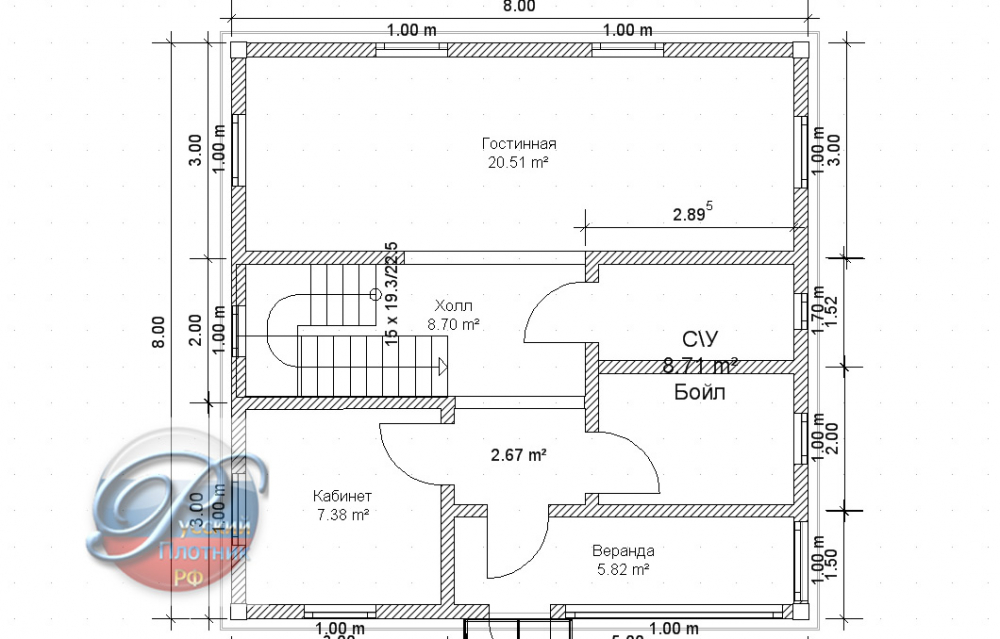 Проект двухэтажного дома Каркасный дом 8х8 (8 на 8), проект двух этажного дома