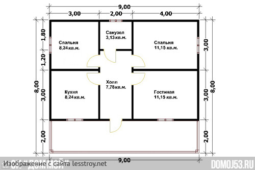 Проект одноэтажного дома Каркасный дом 8х9 Максим