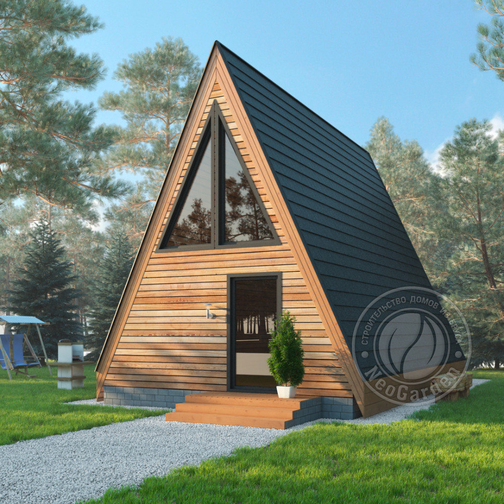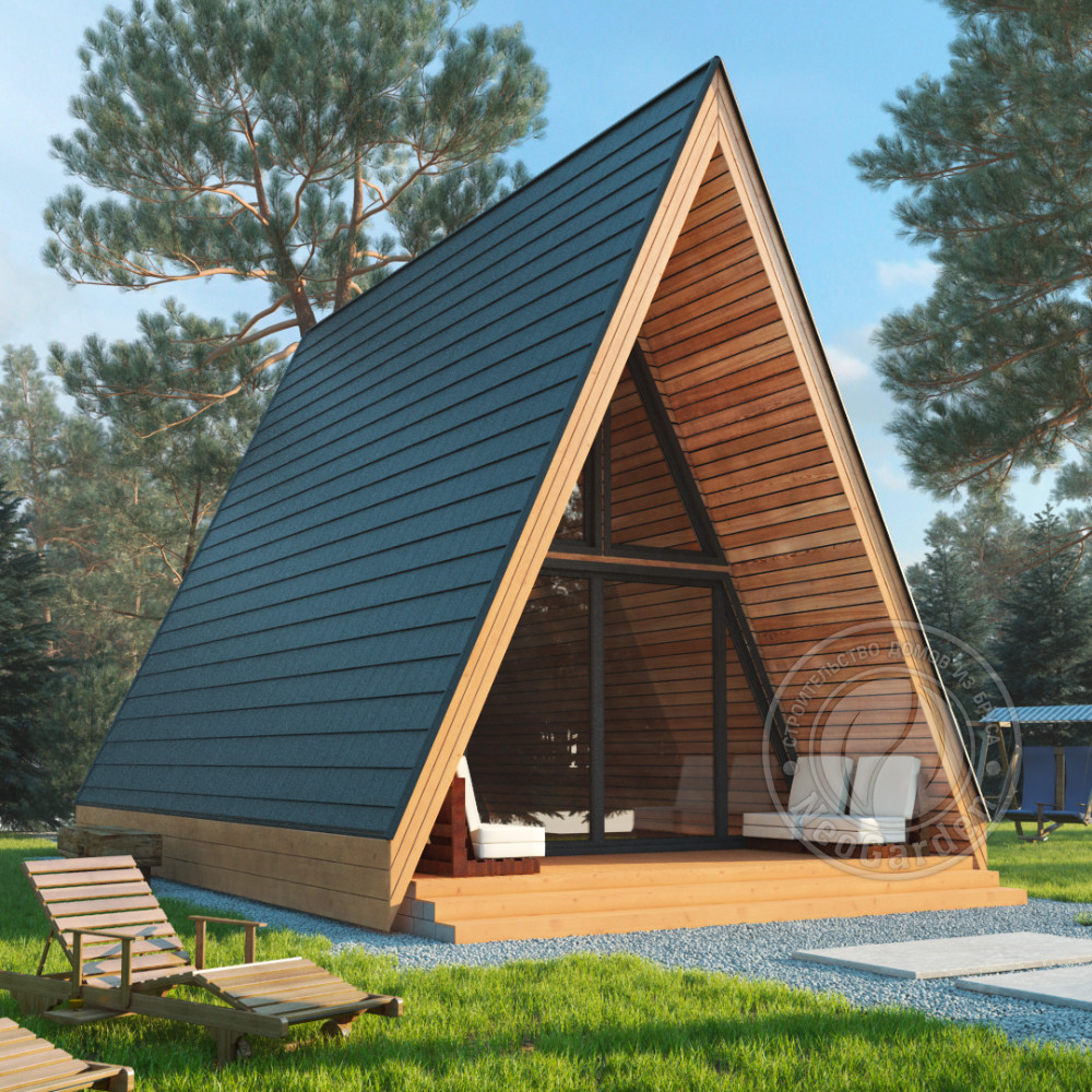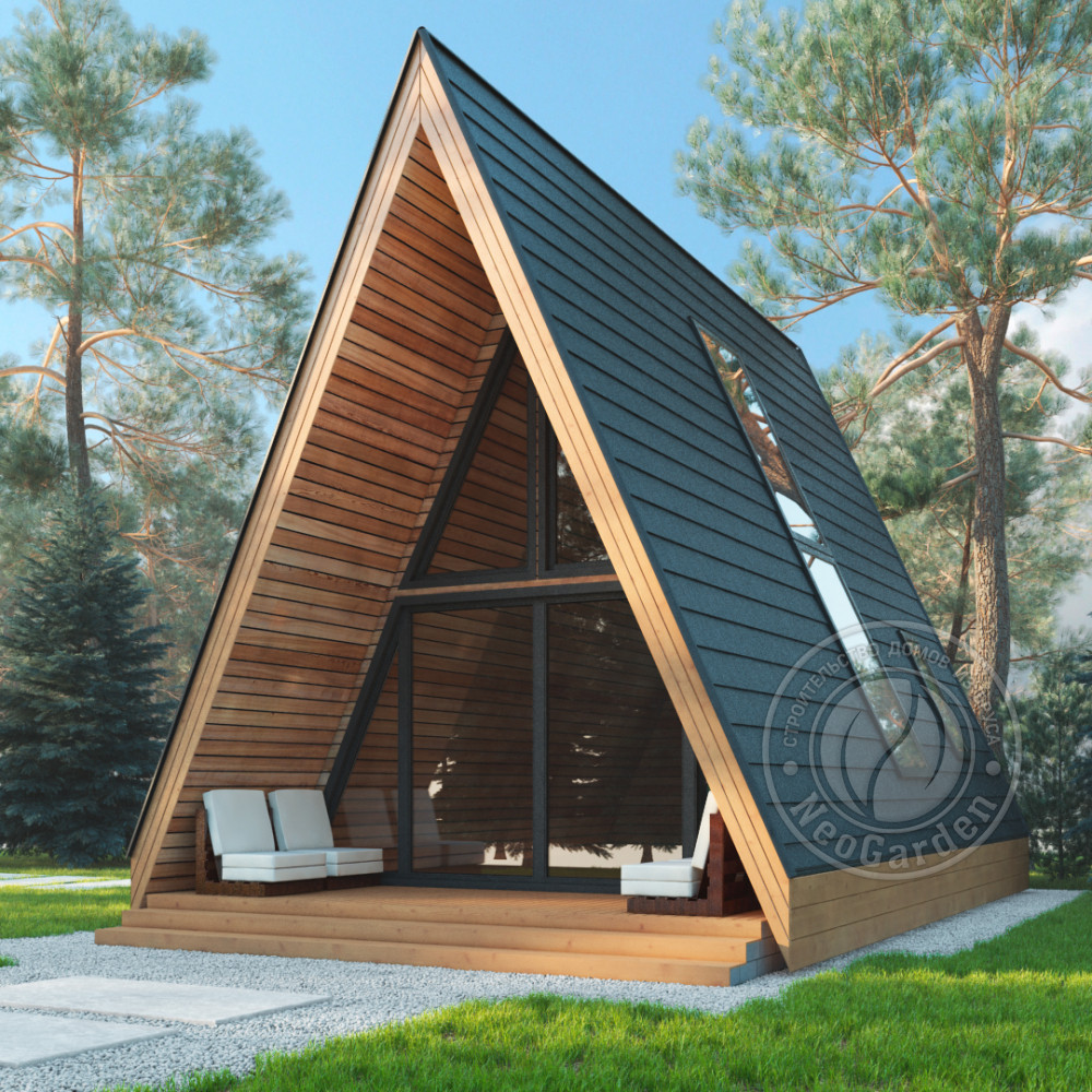 - Стиль, разновидность: Дома в стиле A-frame (шалаш)