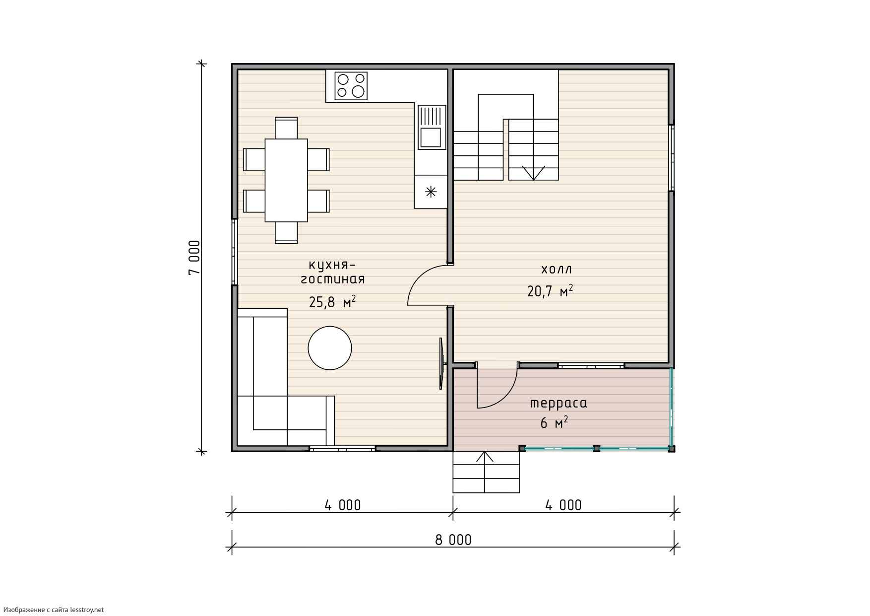 Проект двухэтажного дома Каркасный дом 8х8 с большой террасой (К-37)