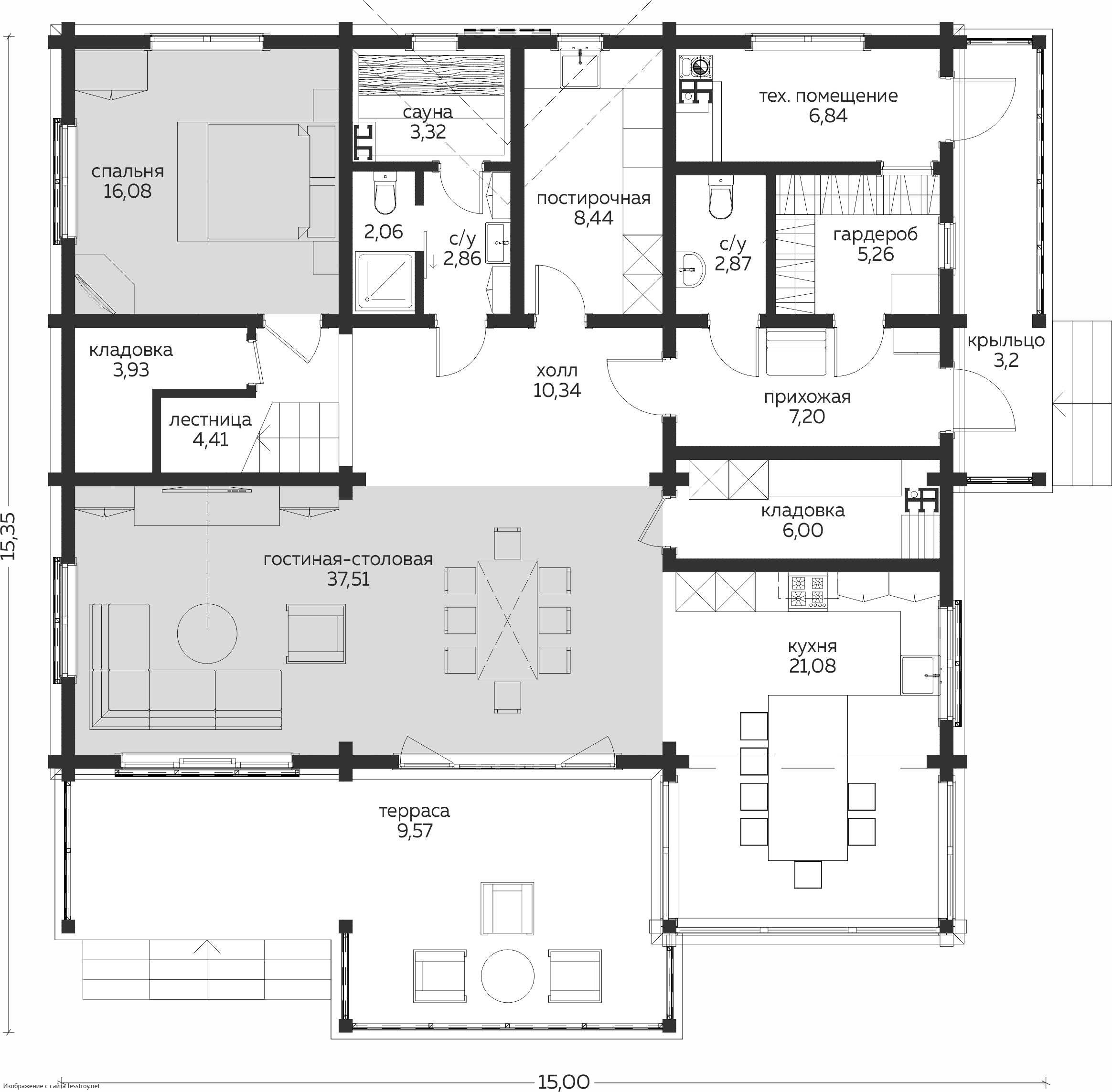 - Тип кровли: Дома с четырехскатной крышей (вальмовой)