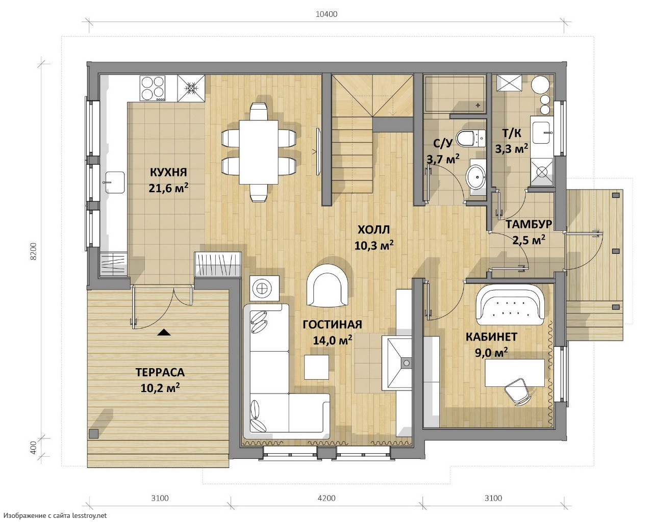Создано с заботой о природе. Стильный интерьер в рамках 18 м². Материал кровли — металлочерепица, что добавляет зданию индивидуальность. В доме предусмотрено 1 спальня, что важно для комфорта. Архитектура выполнена в стиле дома в стиле модерн.Характеристики