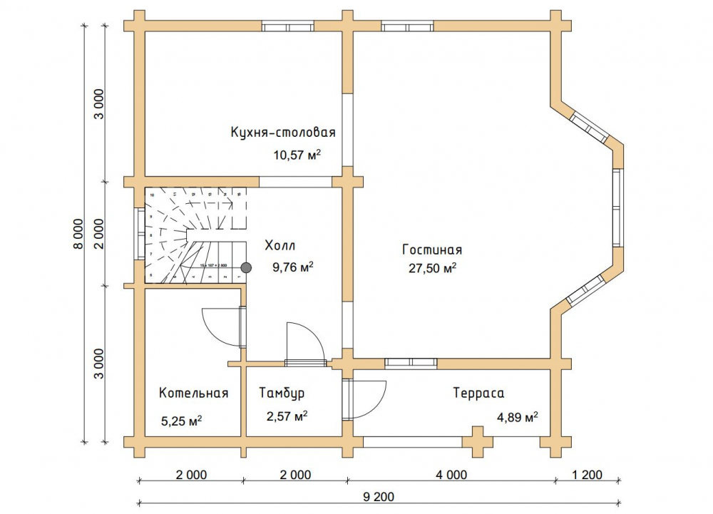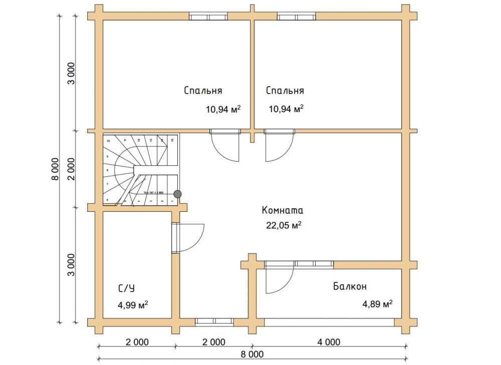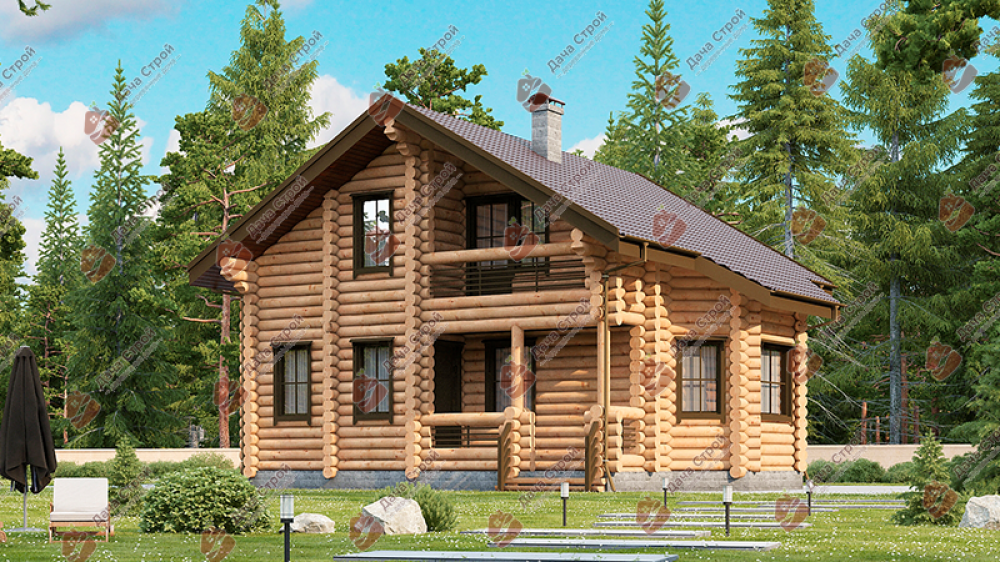 Проект двухэтажного дома Сруб дома 9х9 с мансардой (ломаная крыша)