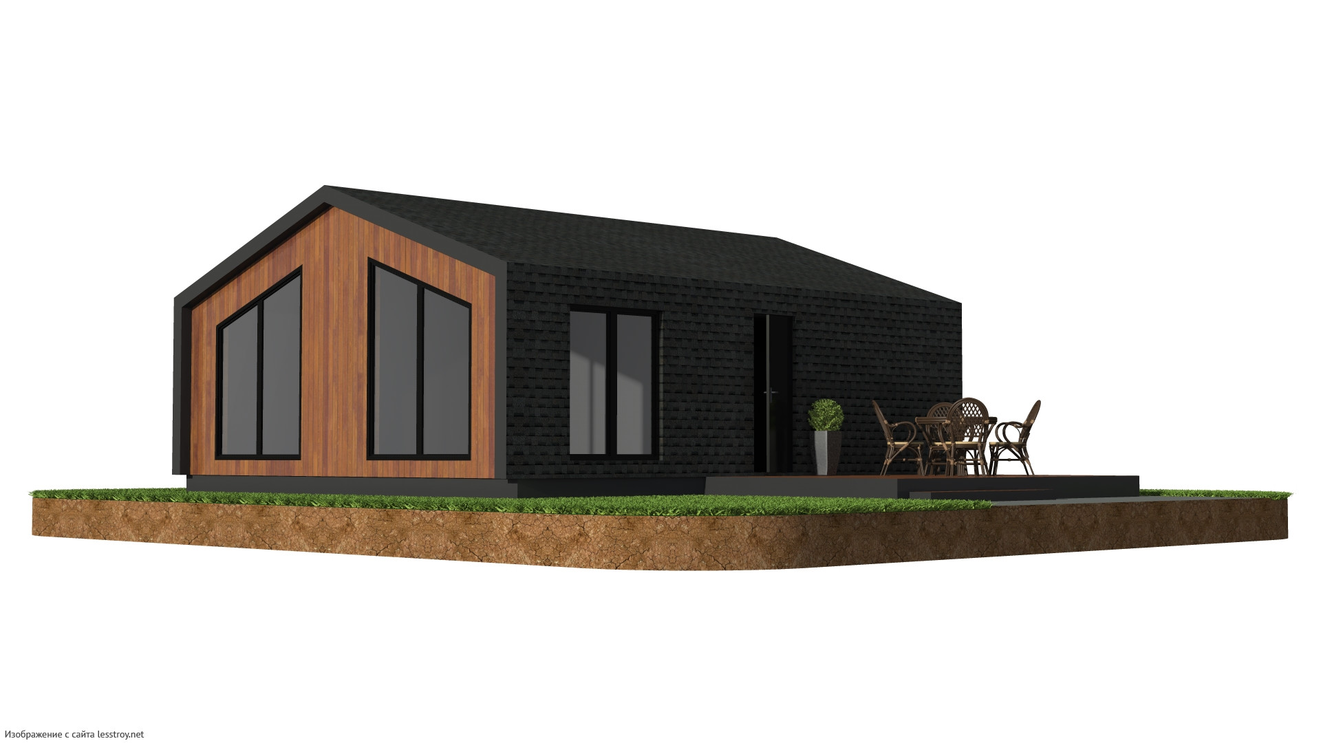 Архитектура, где ни одна комната не остаётся без естественного света. Уют, компактность и 63 м² — три кита этого проекта. В качестве кровли использована битумная черепица — материал, проверенный временем. Дом спроектирован в духе дома в стиле амбар. Конструкция из Каркас обеспечивает прочность и долговечность.Характеристики