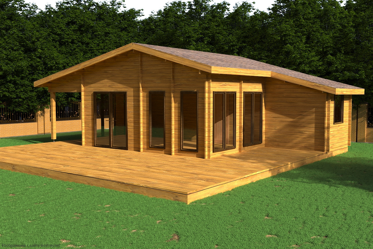Проект одноэтажного дома Одноэтажный дом из профилированного бруса 8,5x12,2 м. с террасой