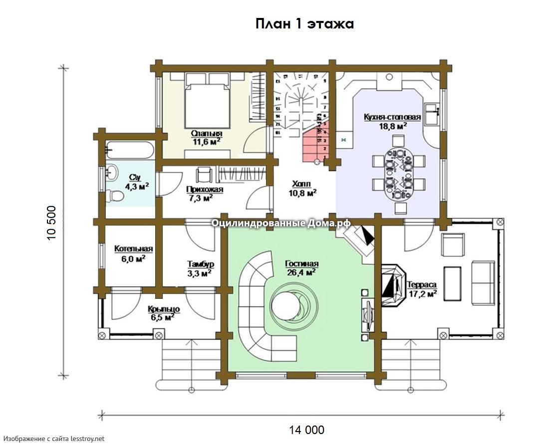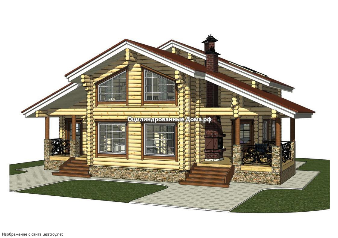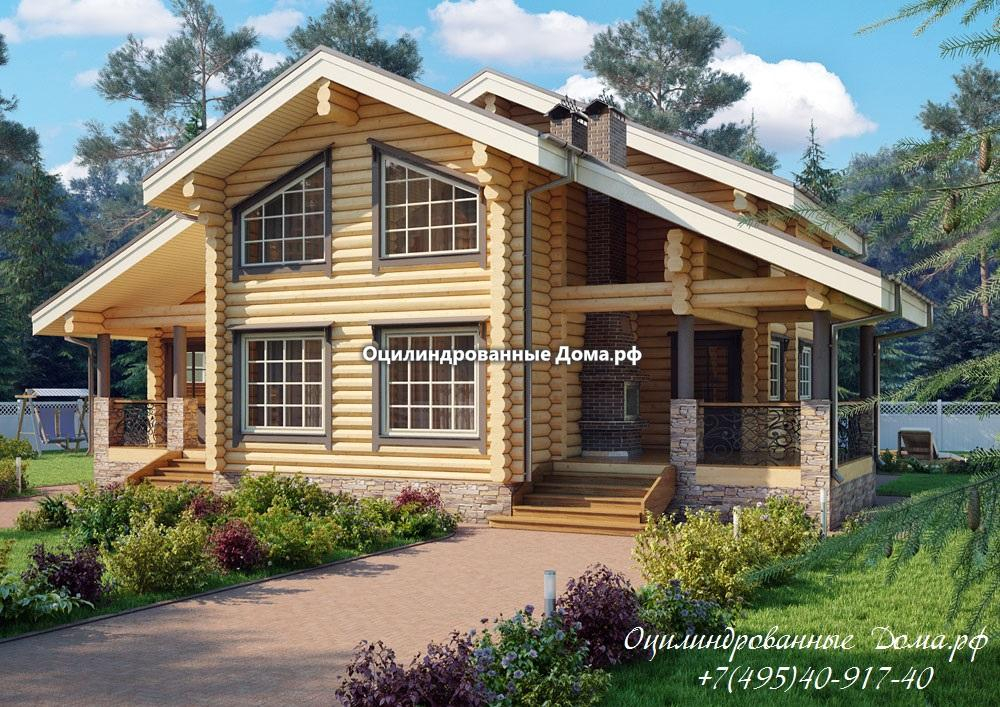 Проект двухэтажного дома Коттедж из оцилиндрованного бревна ОСТАШКОВ - 185м2 (10мХ13м)