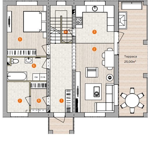 - Несущие стены толщиной 300 мм, благодаря высоким теплотехническим свойствам с учетом внешней отделки (кирпичная кладка/утепленные панели под кирпич) проходят норму теплосопротивляемости и не нуждаются в дополнительном утеплении.
