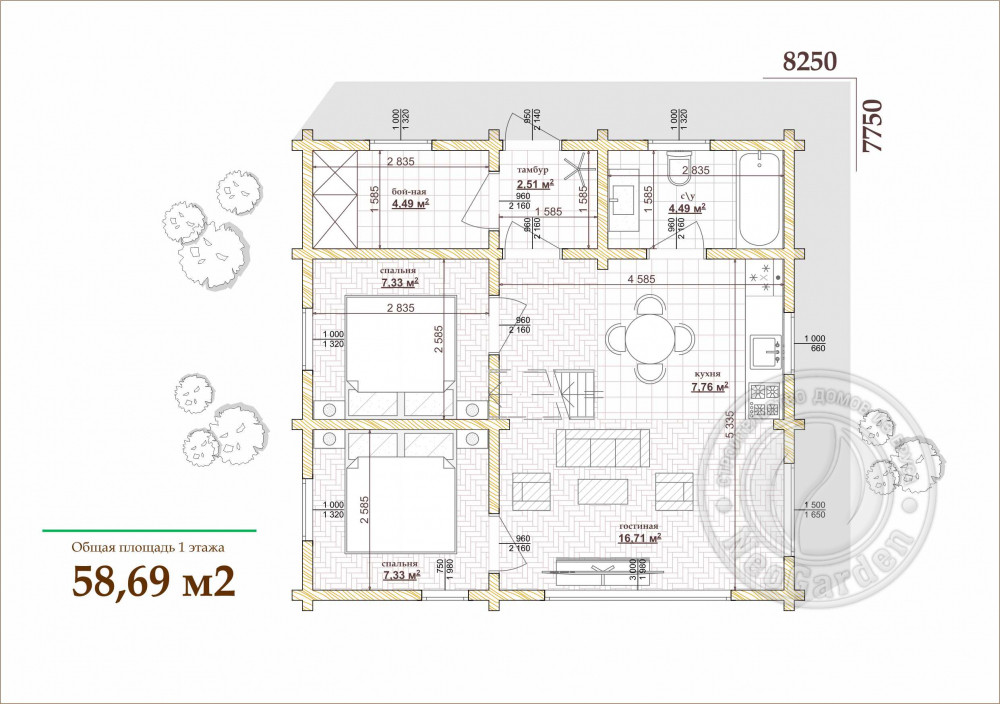 Проект двухэтажного дома Лапландия экобрус 165х165мм
