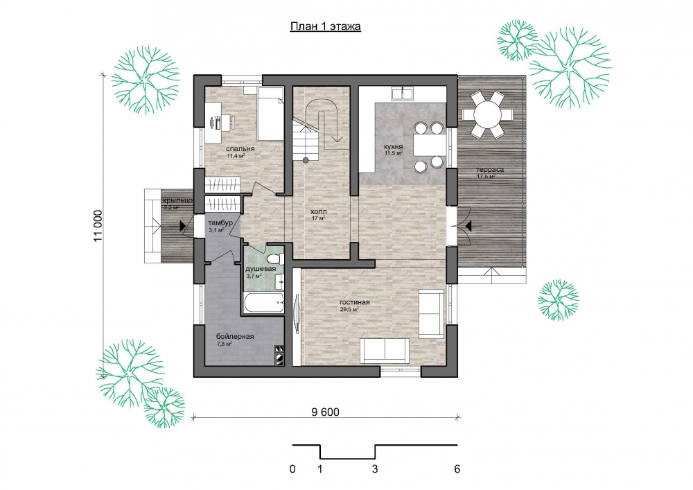 Дом из газобетона площадью 244 м² с четырьмя спальнями сочетает в себе прочность и современный дизайн. Материал обеспечивает отличную теплоизоляцию и долговечность. Просторные комнаты и большие окна создают ощущение простора. Проект идеален для тех, кто ценит надёжность и комфорт.Характеристики
