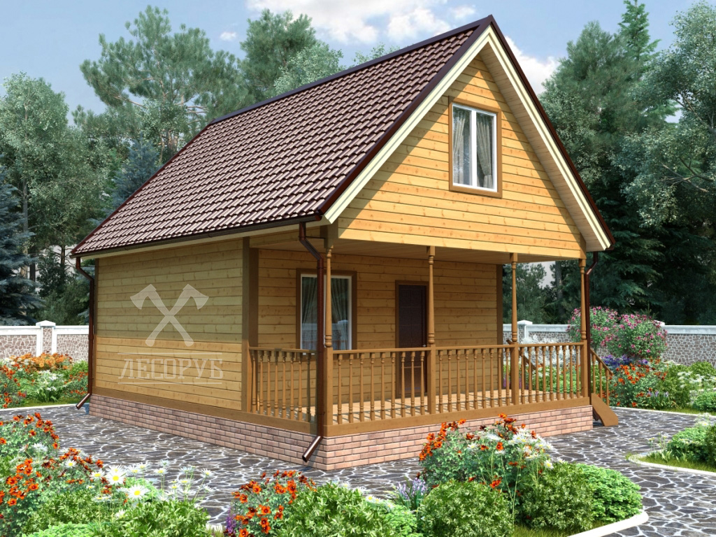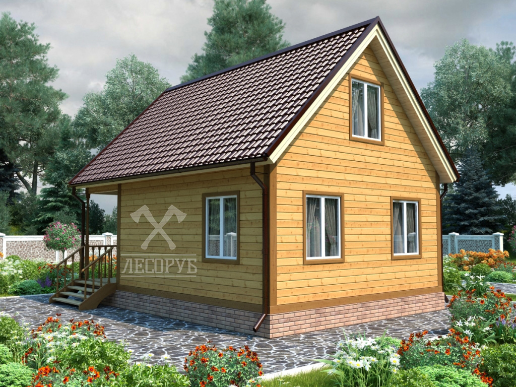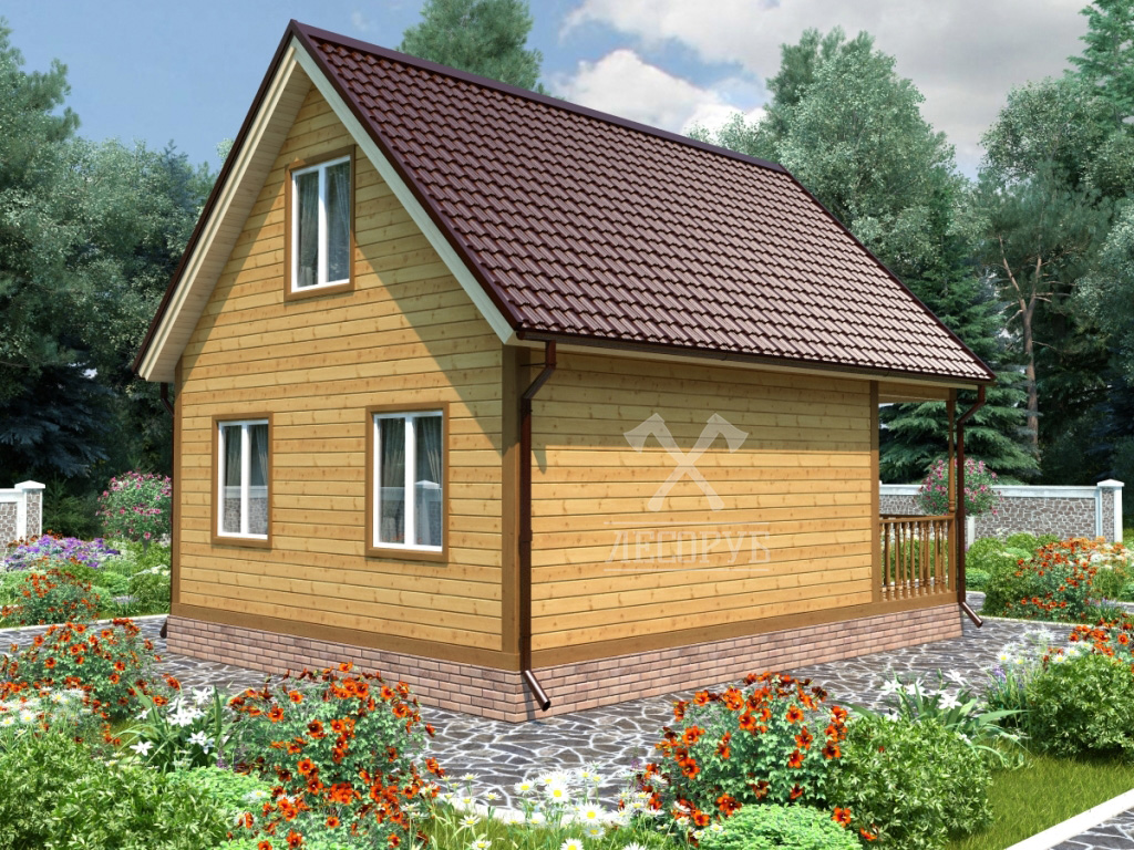 Проект двухэтажного дома Дом 6х8 м с мансардной крышей и кухней-гостиной