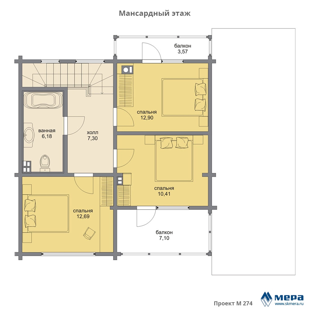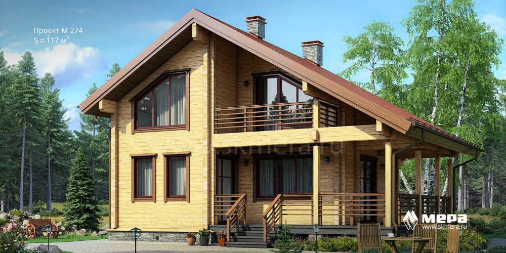 Двухэтажный 117-метровый дом из клееного бруса с мансардной крышей. Три солнечные спальни и битумная черепица создают образ идеального семейного гнезда.Характеристики