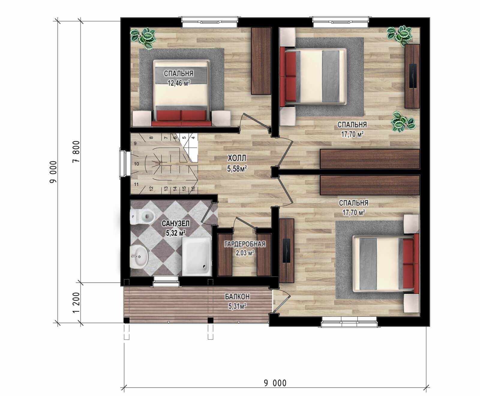 - Форма: Квадратные дома