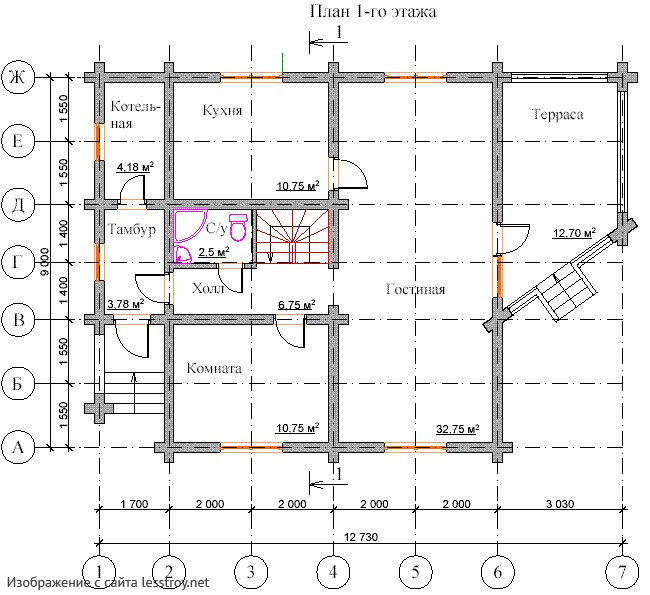 Проект двухэтажного дома Коттедж из оцилиндрованного бревна. Проект Ветрово.
