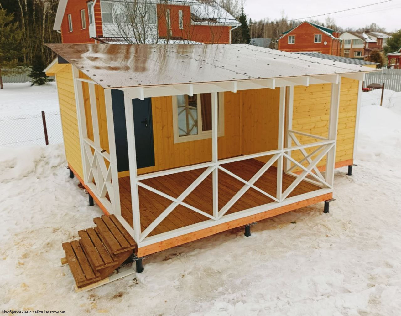 Проект одноэтажного дома Модульный домик с террасой