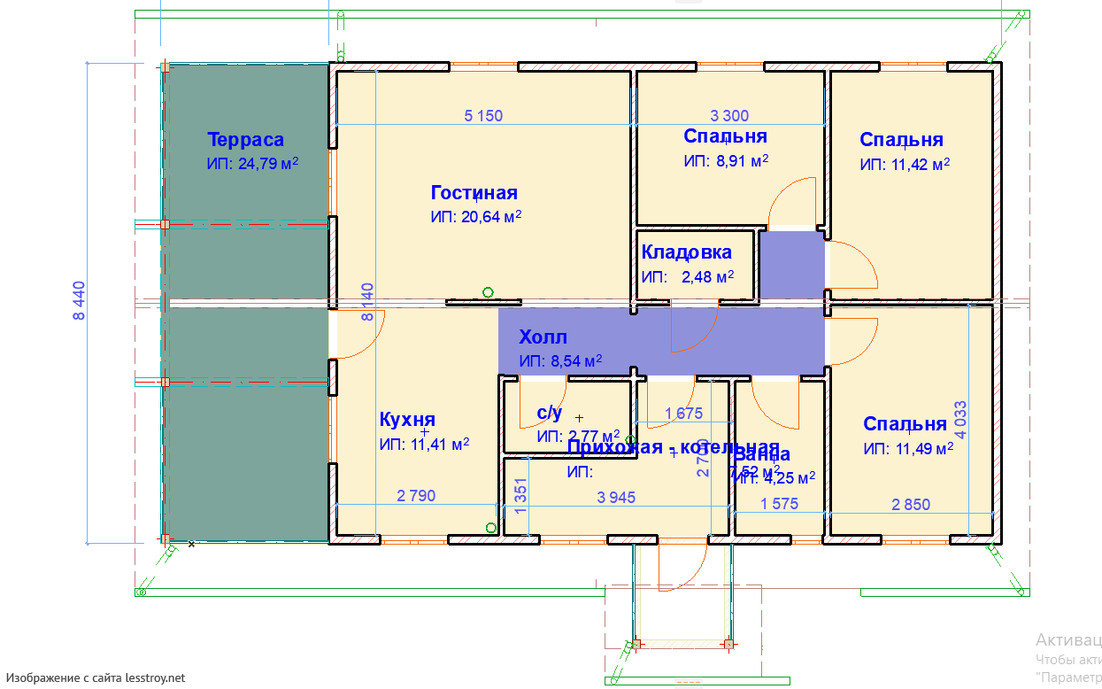 Проект одноэтажного дома Одноэтажный 81 с террасой