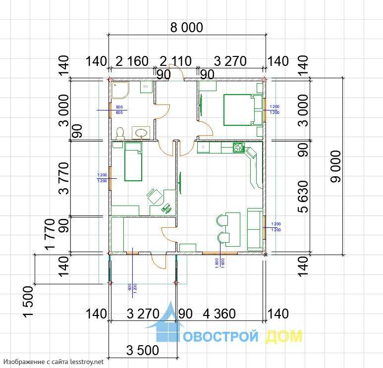 Проект одноэтажного дома ОДНОЭТАЖНЫЙ 8Х9 М ПОД КЛЮЧ