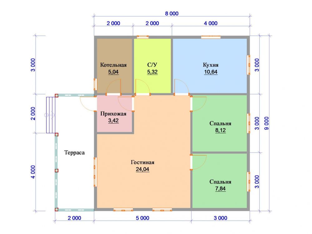 Проект одноэтажного дома Одноэтажный дом из бруса 8 на 9 (Проект Д-17)