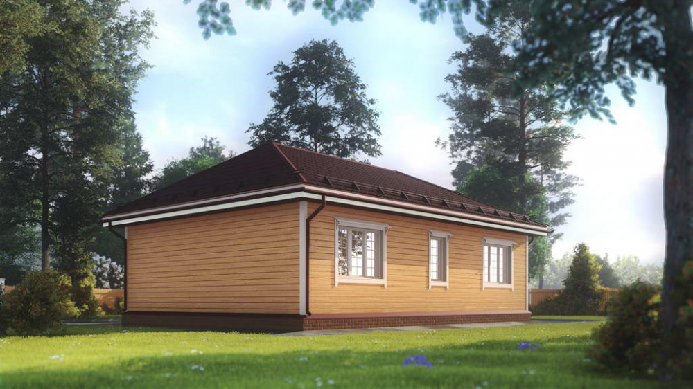 Проект одноэтажного дома Одноэтажный дом из бруса под усадку 8х11 с вальмовой крышей