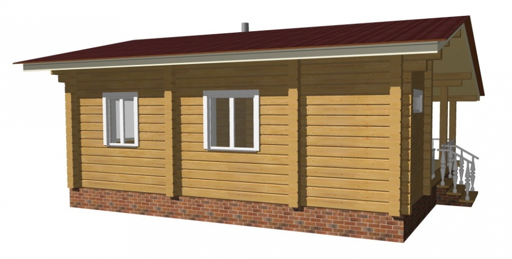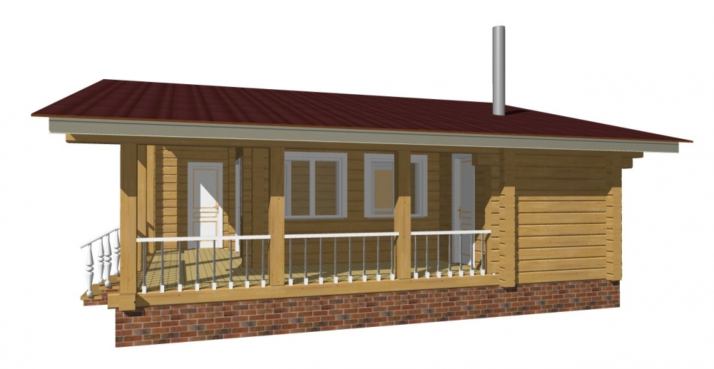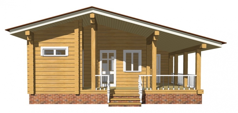 Проект одноэтажного дома Одноэтажный дом из профилированного бруса 6x6 м. с террасой