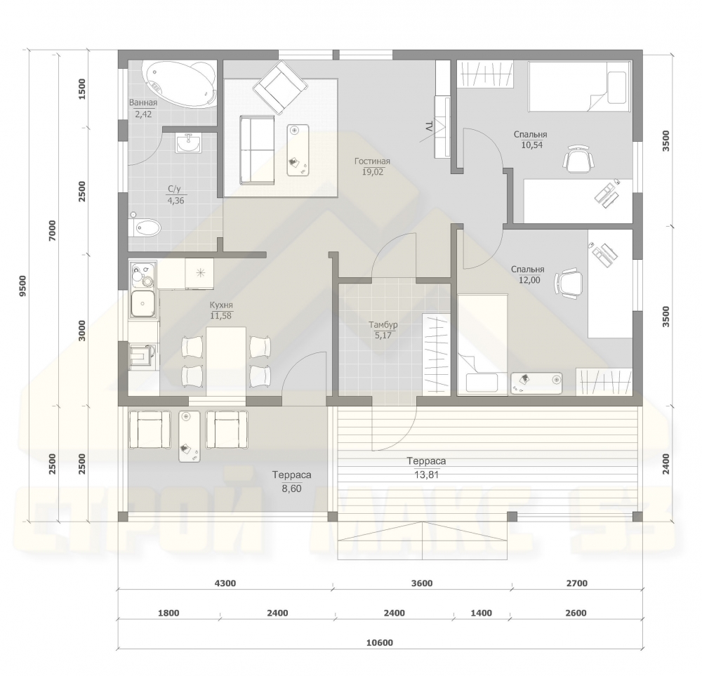 Жилище, созданное для тех, кто любит принимать гостей. Идеальный метраж — 90 м² для реализации мечты. Ондулин придаёт дому выразительность и надёжность. Архитектура выполнена в стиле дома в классическом стиле. Проект включает 2 спальни — удобно для семьи.Характеристики