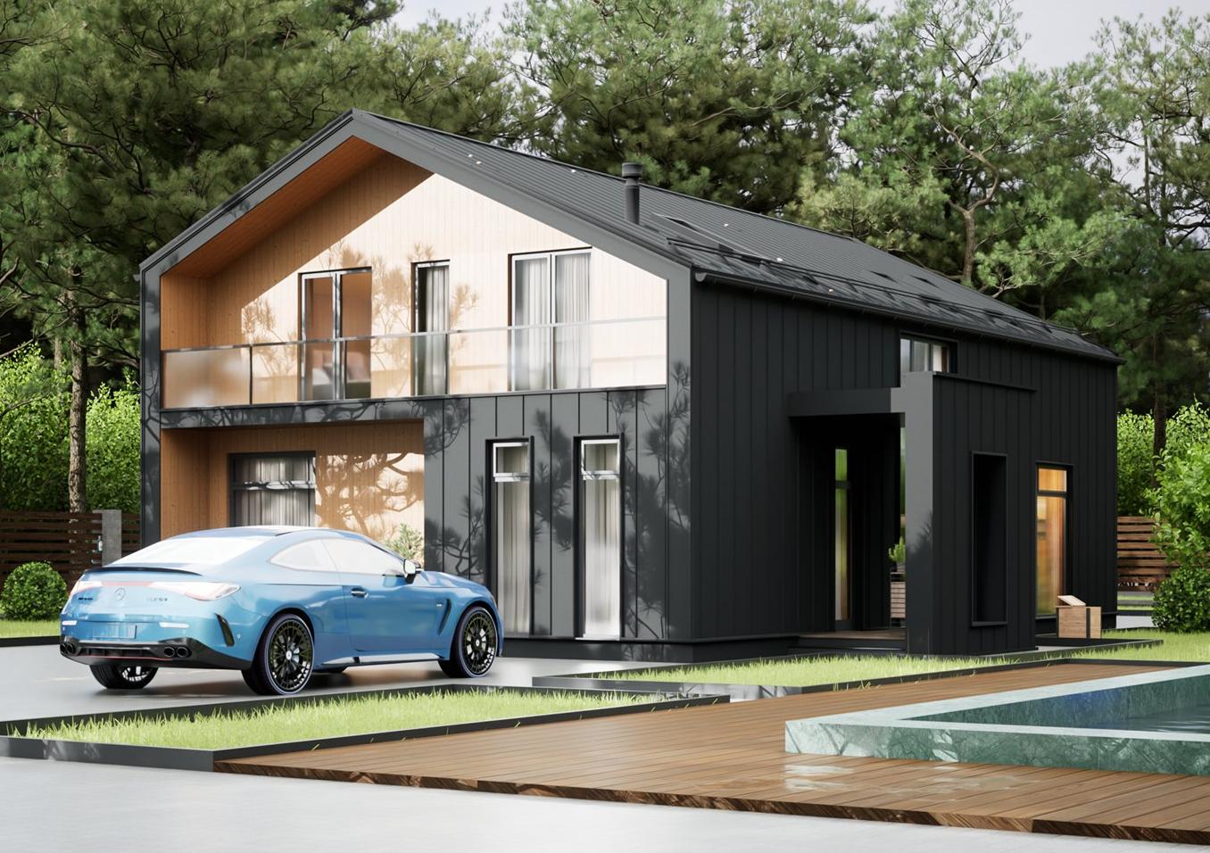 - Отделка фасада: Дома с отделкой металлическим сайдингом
