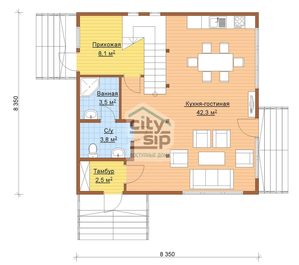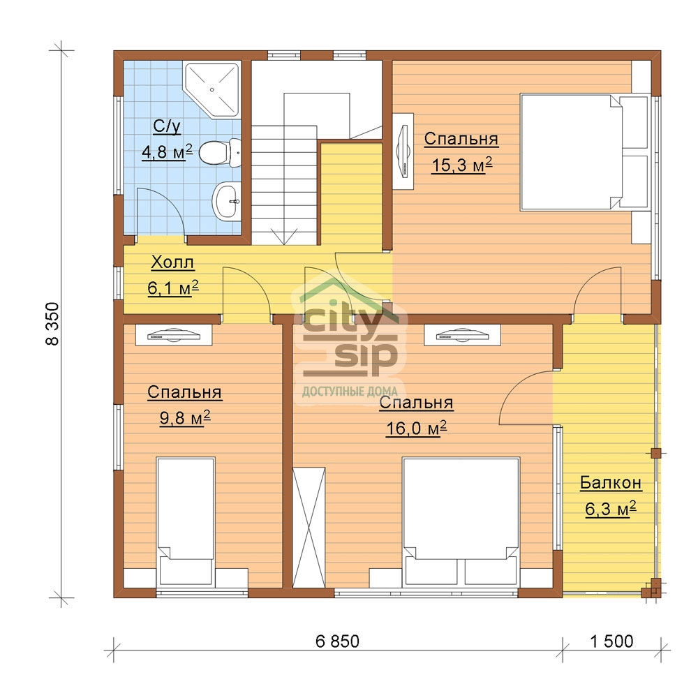 Проект двухэтажного дома Каркасный дом 8х8 (8 на 8), проект двух этажного дома