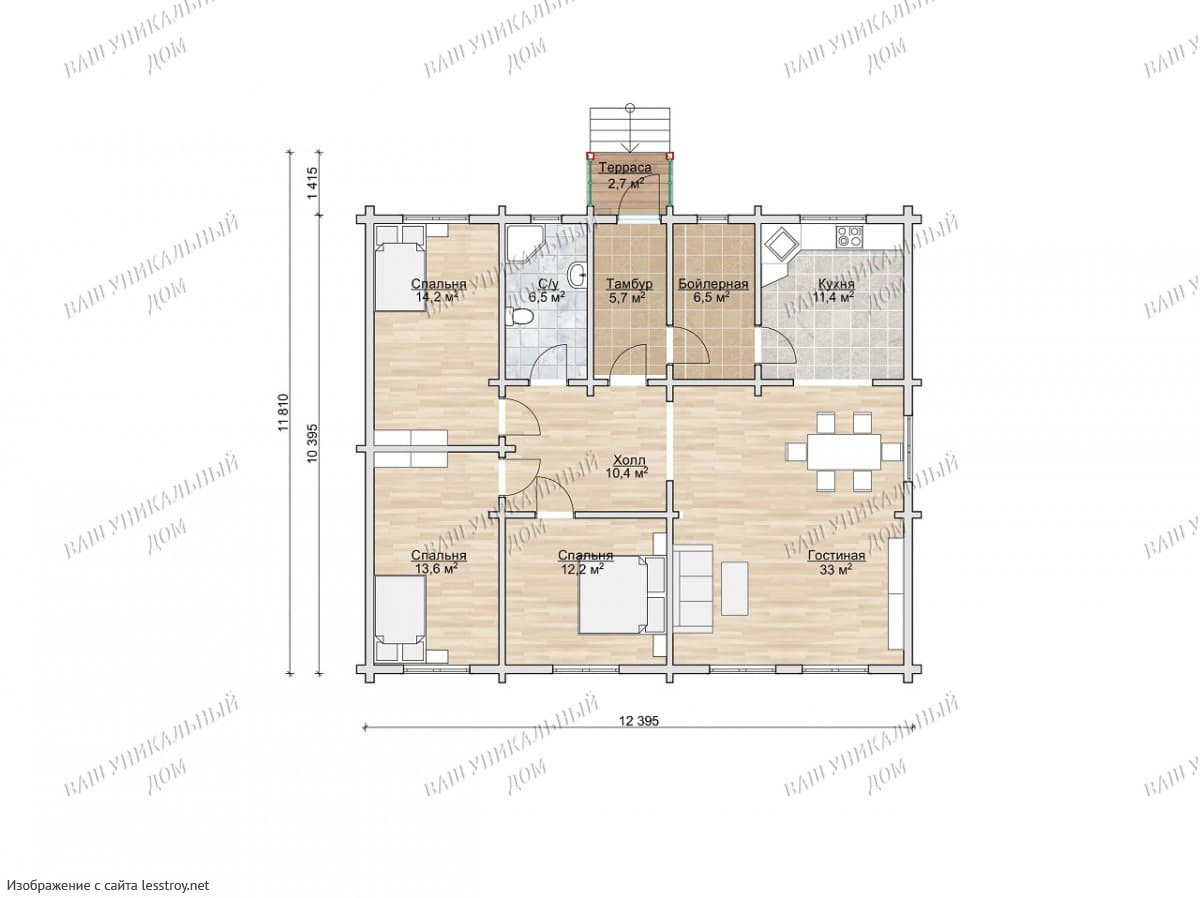 Проект одноэтажного дома Дом из бруса ДБ-66 проект Технология