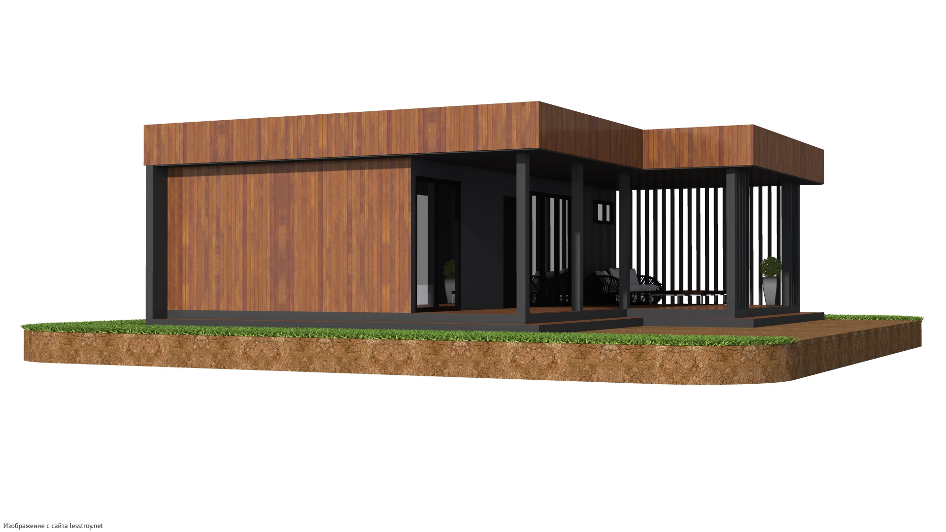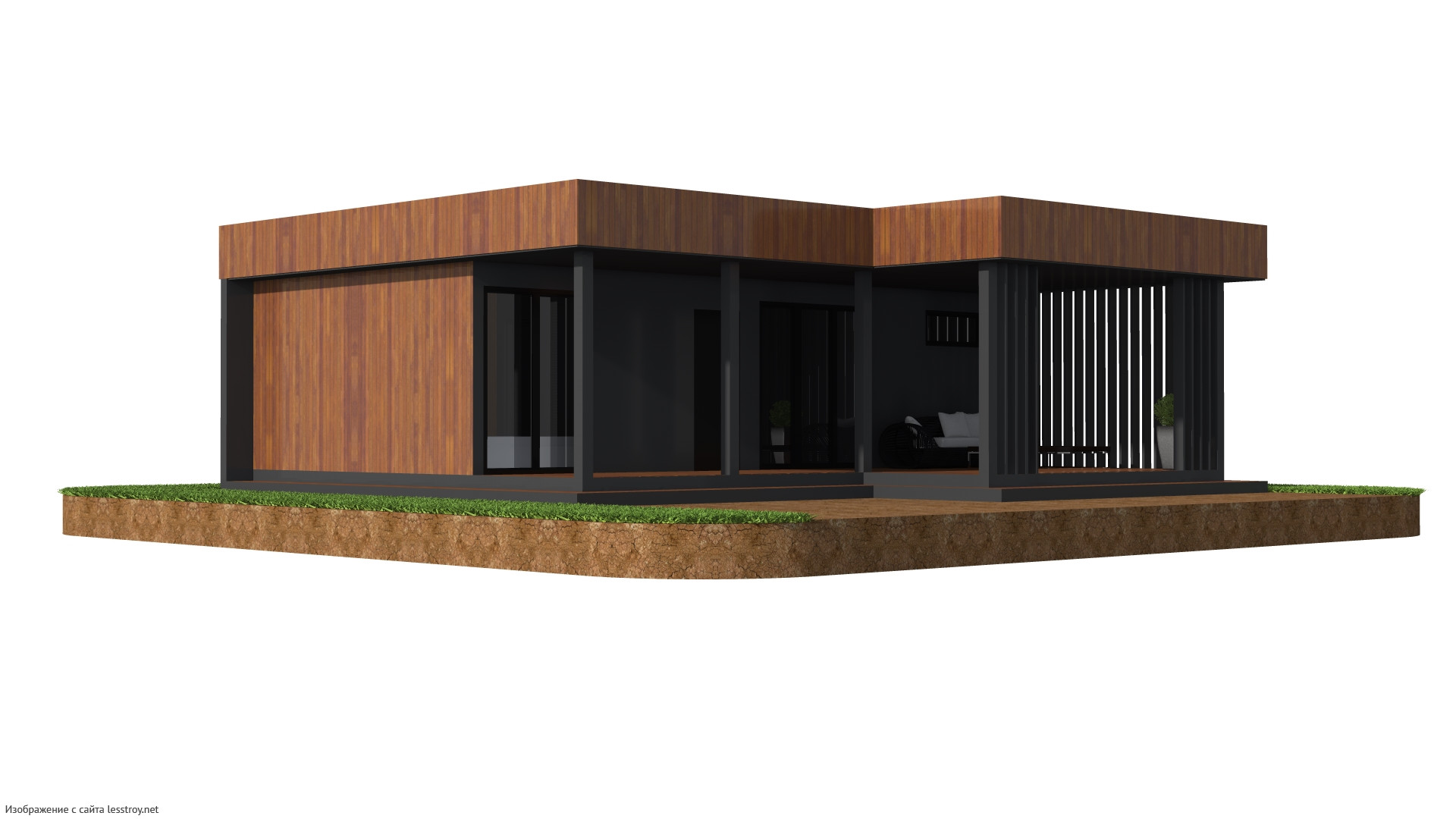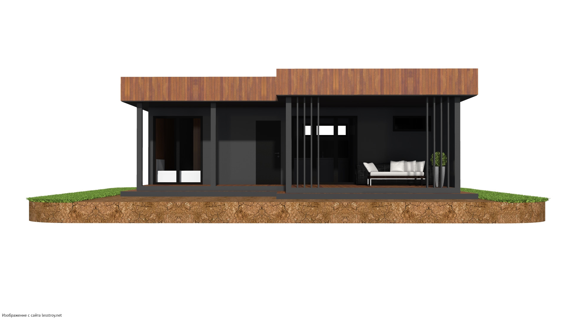 Здесь каждый кубометр пропитан любовью. Суммарная площадь 67 м² создаёт атмосферу простора. Материал кровли — битумная черепица, что добавляет зданию индивидуальность. Дом спроектирован в духе дома в стиле хай тек. Это одноэтажная структура, которая разграничивает спальные и дневные помещения.Характеристики