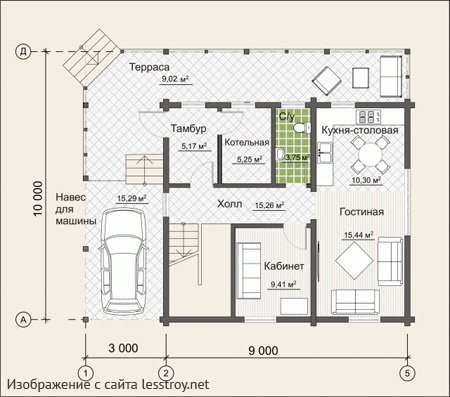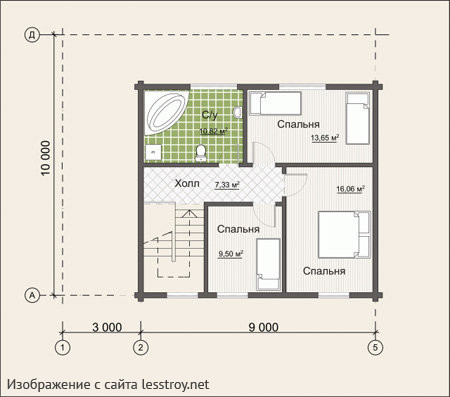 Проект одноэтажного дома Полутораэтажный дом из бруса 10х12 | ДМ-17