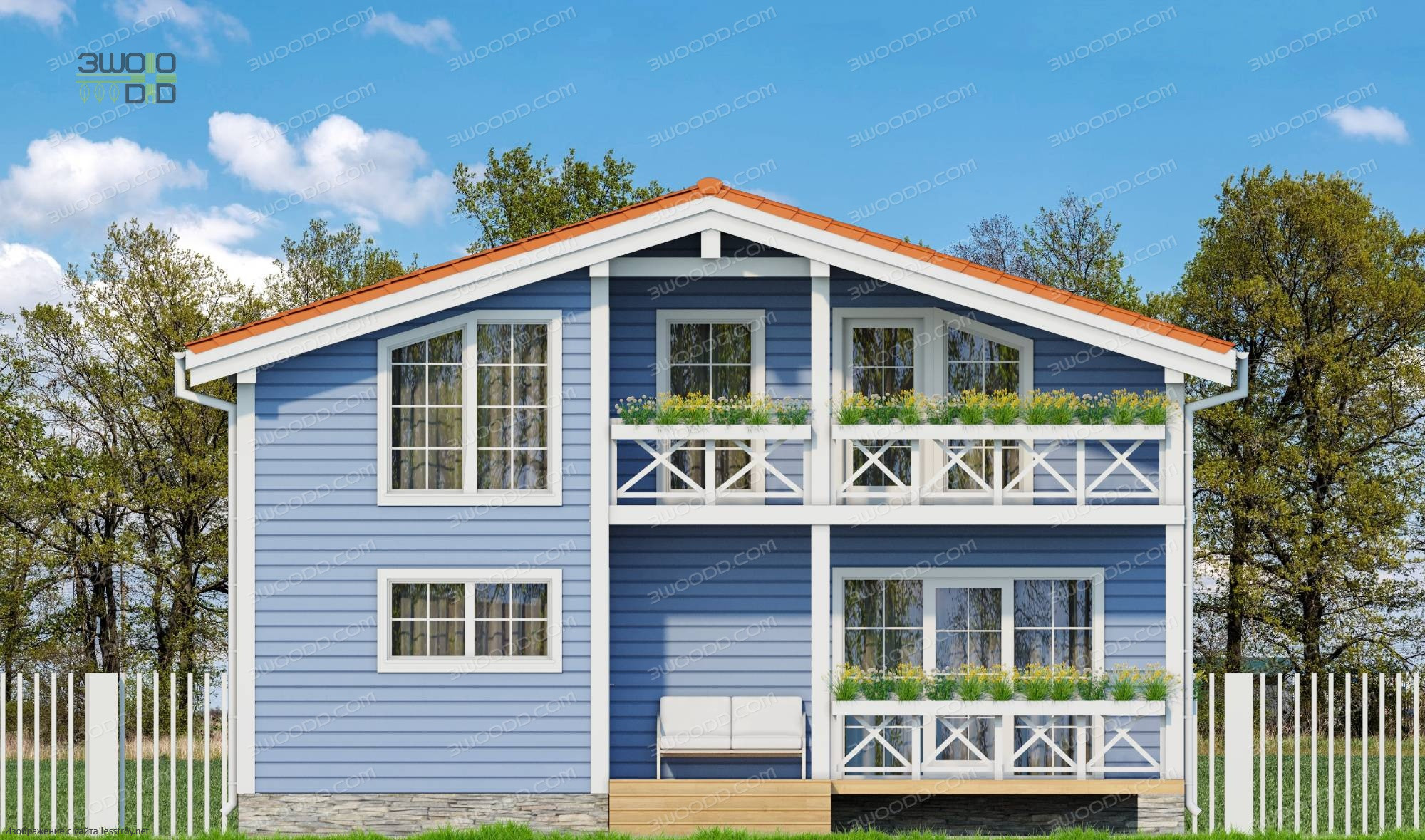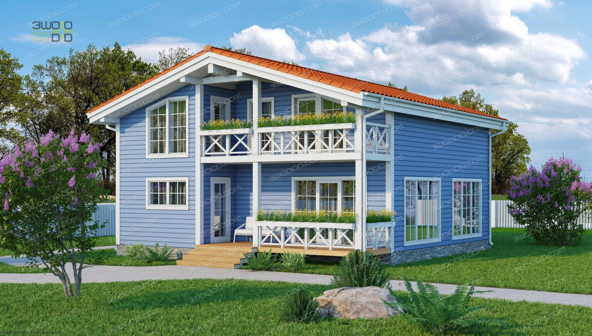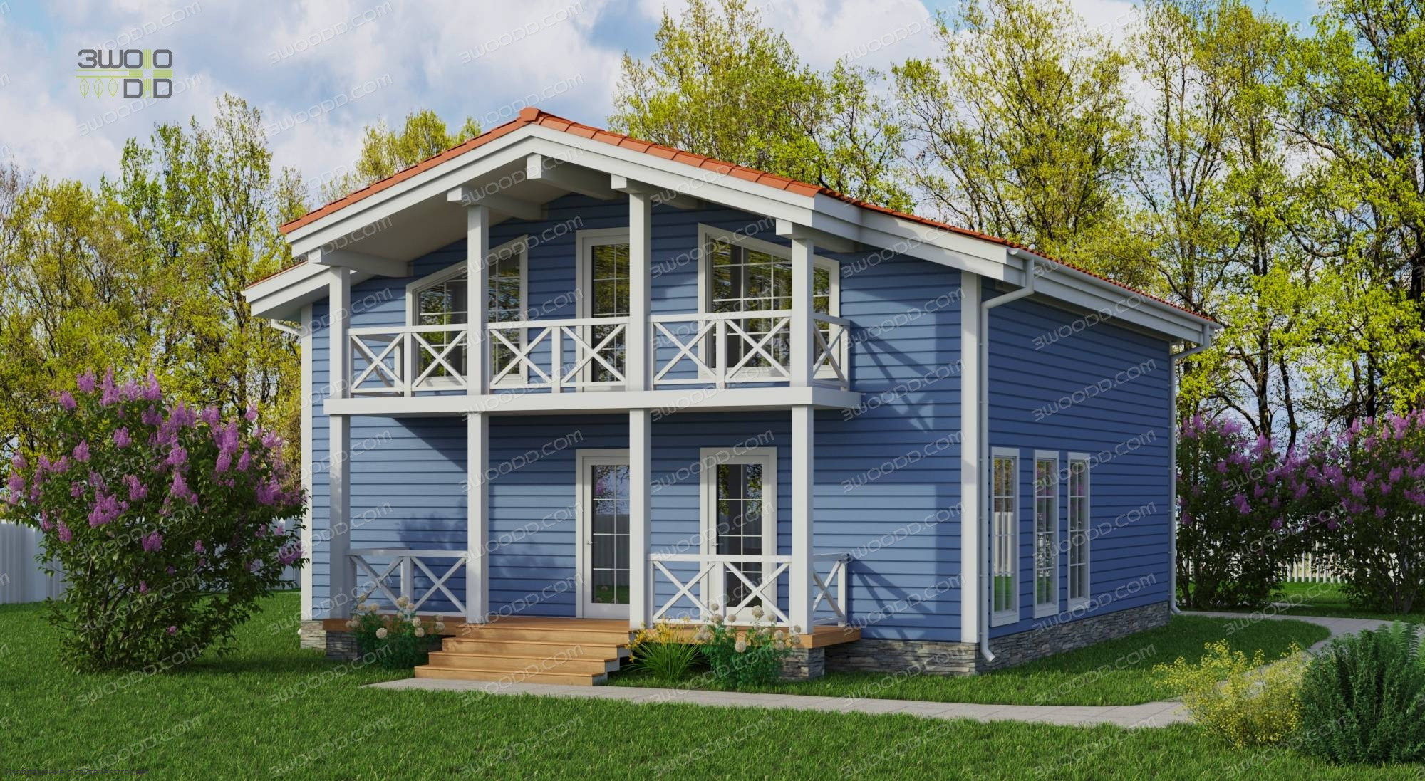 Проект двухэтажного дома Проект 1240 - финский каркасный дом с мансардным этажом